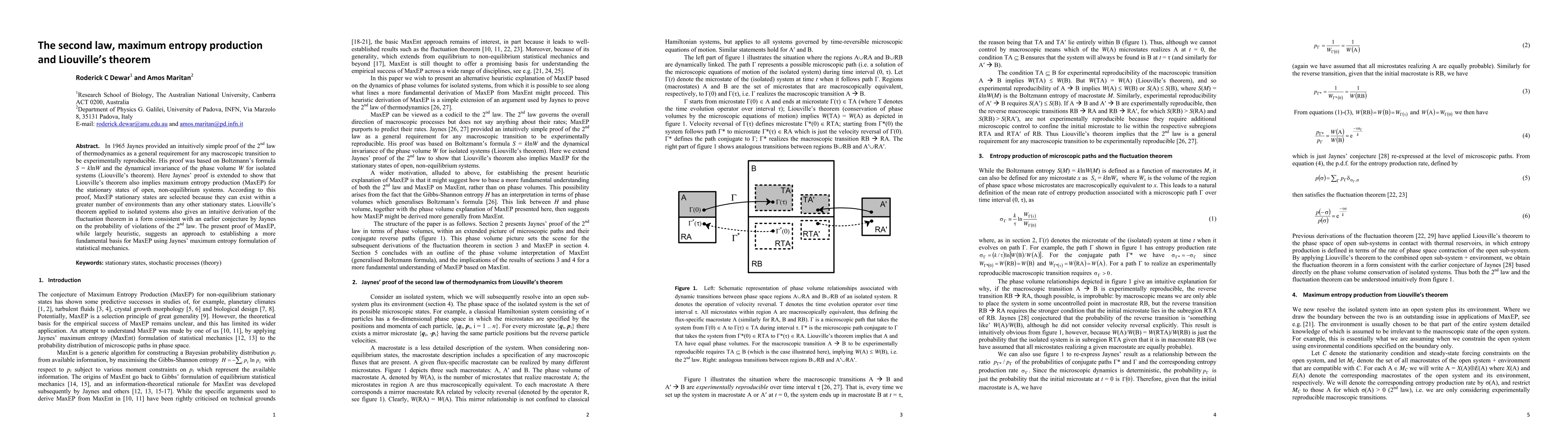In 1965 Jaynes provided an intuitively simple proof of the 2nd law of thermodynamics as a general requirement for any macroscopic transition to be experimentally reproducible. His proof was based on Boltzmann's formula S = klnW and the dynamical invariance of the phase volume W for isolated systems (Liouville's theorem). Here Jaynes' proof is extended to show that Liouville's theorem also implies maximum entropy production (MaxEP) for the stationary states of open, non-equilibrium systems. According to this proof, MaxEP stationary states are selected because they can exist within a greater number of environments than any other stationary states. Liouville's theorem applied to isolated systems also gives an intuitive derivation of the fluctuation theorem in a form consistent with an earlier conjecture by Jaynes on the probability of violations of the 2nd law. The present proof of MaxEP, while largely heuristic, suggests an approach to establishing a more fundamental basis for MaxEP using Jaynes' maximum entropy formulation of statistical mechanics.