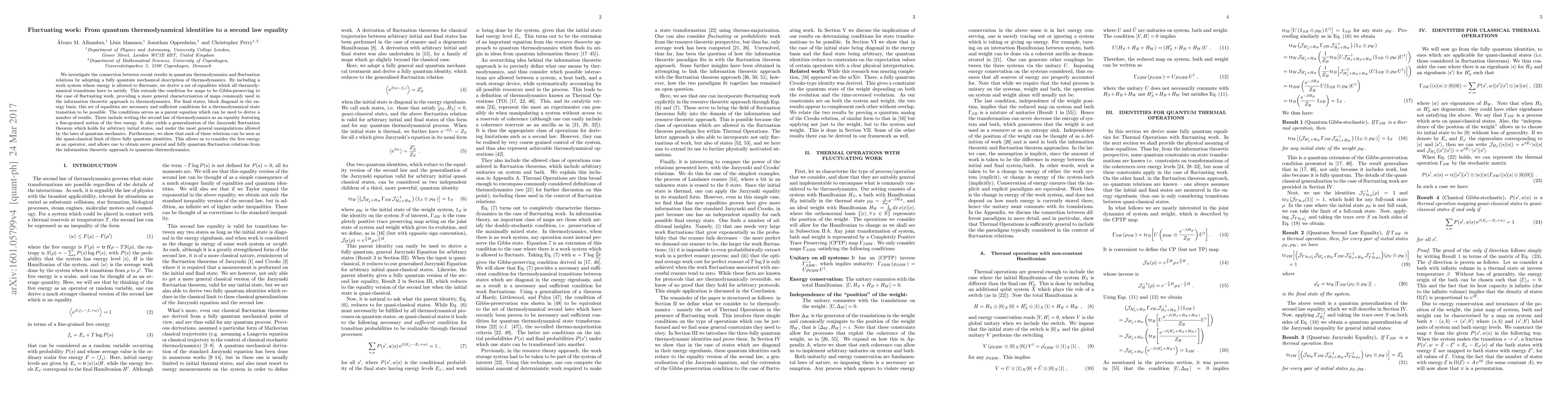 This paper establishes a set of equalities that generalize the second law of quantum thermodynamics, showing how thermodynamic transitions must satisfy these conditions. It extends the Gibbs-preserving maps to fluctuating work, providing a more general framework for quantum thermodynamic processes.