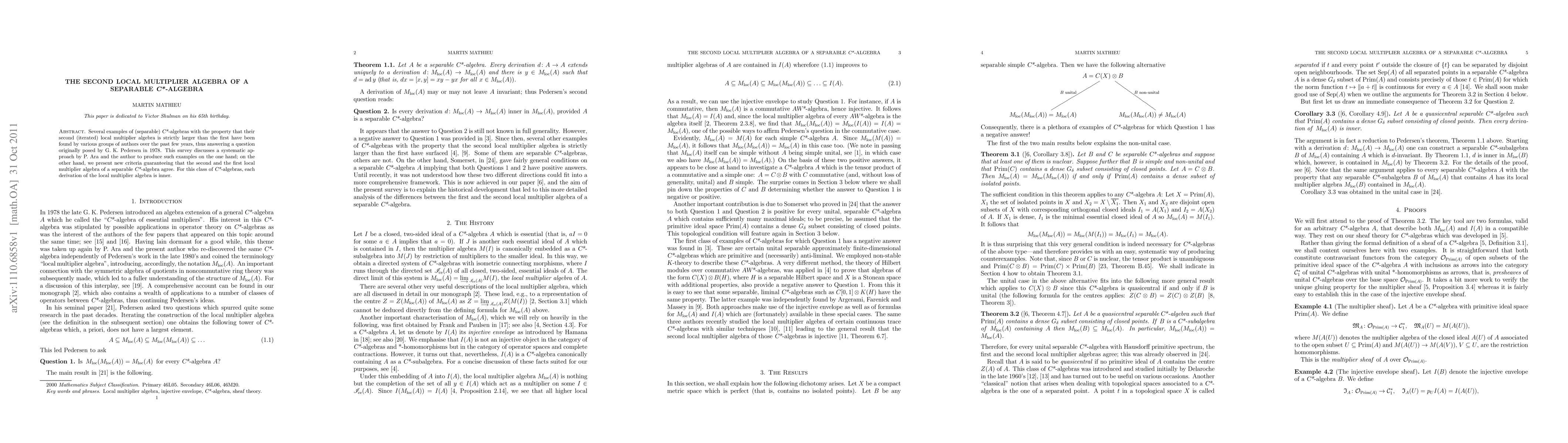 This paper surveys the discovery of separable C*-algebras where the second local multiplier algebra exceeds the first, addressing a question posed by Pedersen in 1978. It presents a systematic approach by P. Ara and the author to generate such examples and introduces new criteria ensuring the equality of the first and second local multiplier algebras, where each derivation is inner.