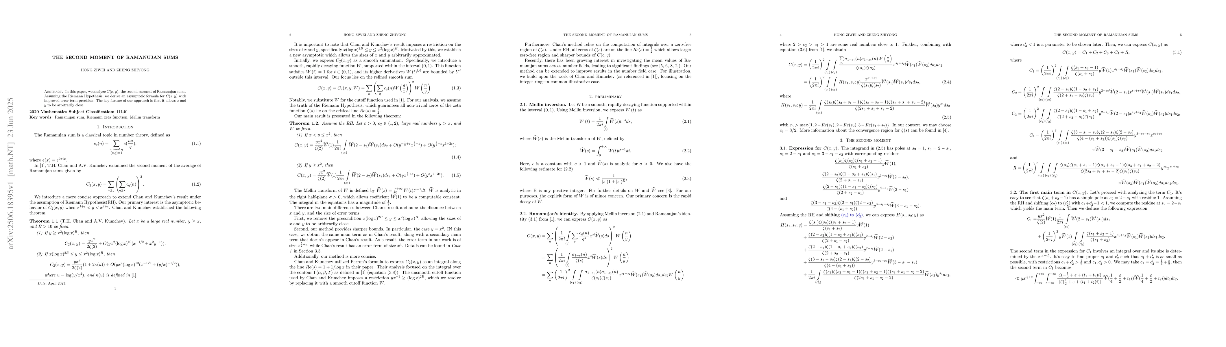 In this paper, we analyze $C(x, y)$, the second moment of Ramanujan sums. Assuming the Riemann Hypothesis, we derive an asymptotic formula for $C(x, y)$ with improved error term precision. The key feature of our approach is that it allows $x$ and $y$ to be arbitrarily close.