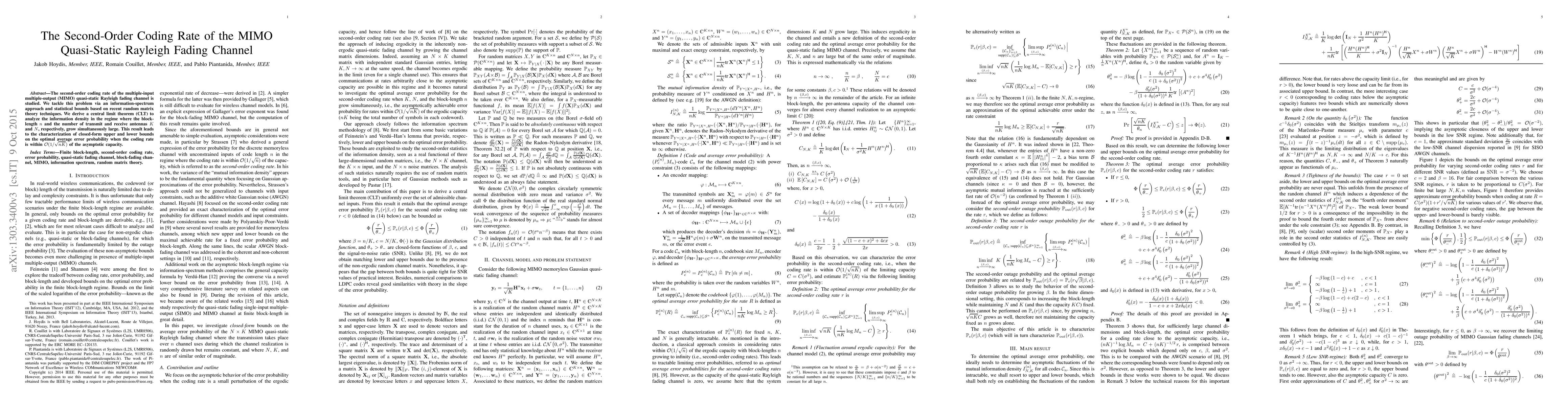 This paper investigates the second-order coding rate for MIMO Rayleigh block-fading channels using an information-spectrum approach and random matrix theory. It derives a central limit theorem to analyze information density and provides closed-form bounds on optimal average error probability.