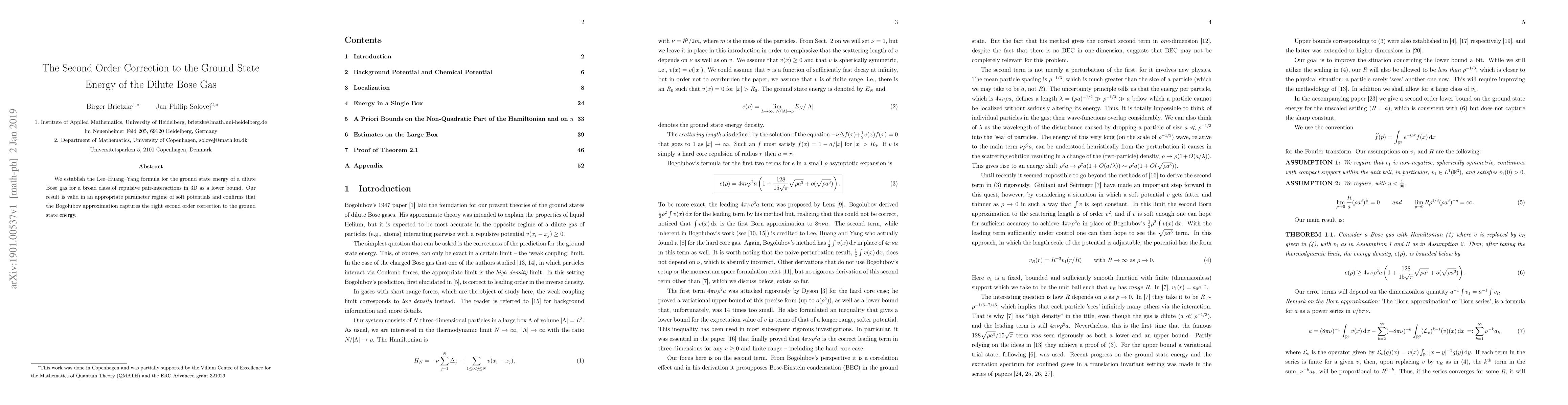 Researchers established a Lee-Huang-Yang formula as a lower bound for the ground state energy of dilute Bose gases with repulsive pair interactions in 3D. The result confirms the Bogolubov approximation captures the correct second-order correction to the energy.