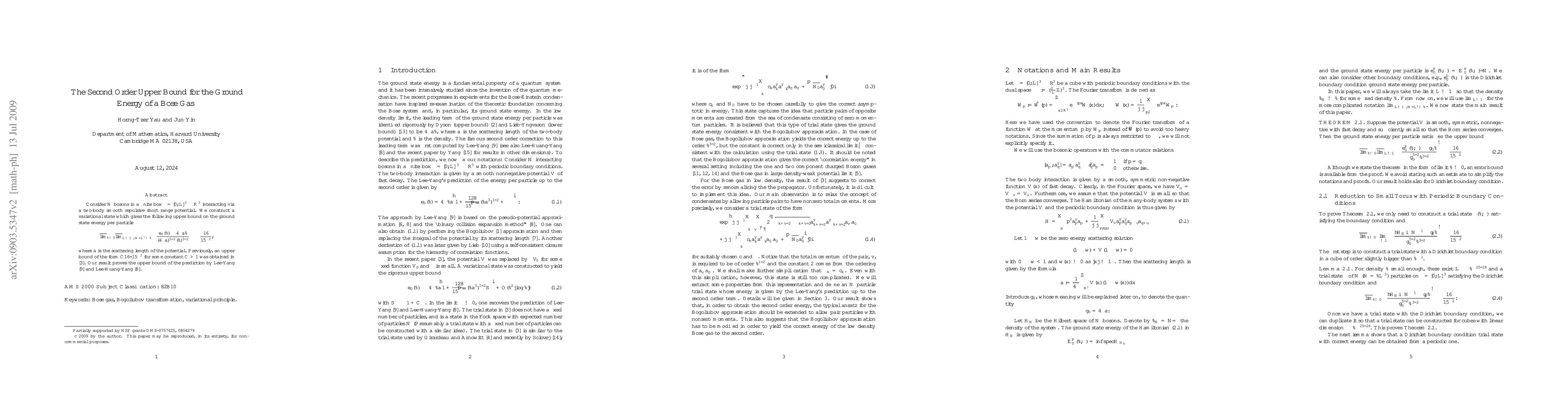 Researchers have found a tighter upper bound on the ground energy of a Bose gas in a finite box, improving upon previous predictions and proving that of Lee-Yang and Lee-Huang-Yang.