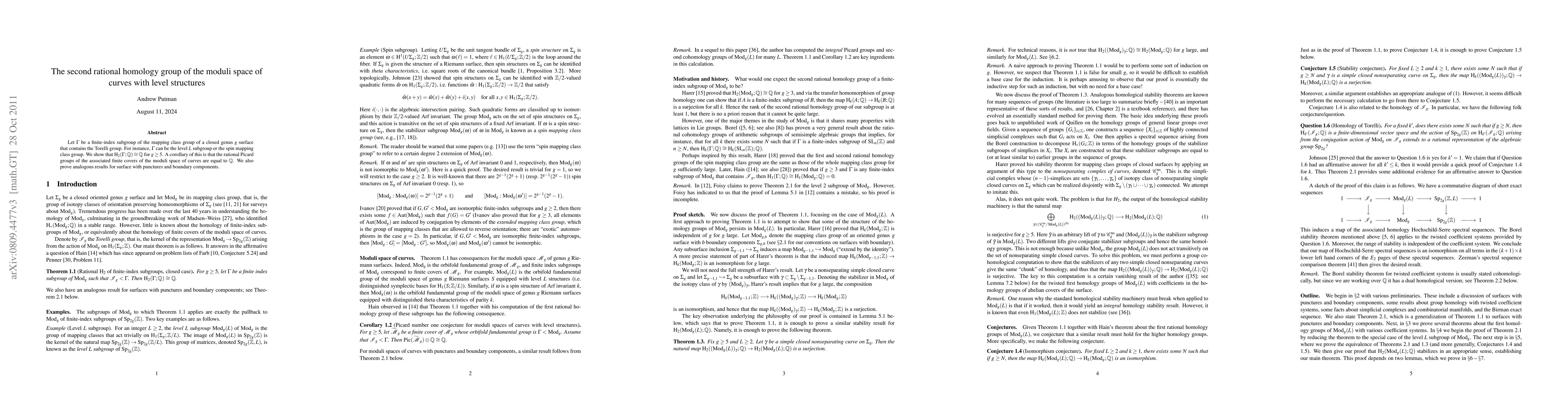 Summary: The research establishes that the second rational homology group of a specific finite-index subgroup of the mapping class group of a closed genus $g$ surface (for $g \geq 5$) is isomorphic to $\Q$. This leads to the conclusion that the rational Picard groups of the associated finite covers of the moduli space of curves are also $\Q$.