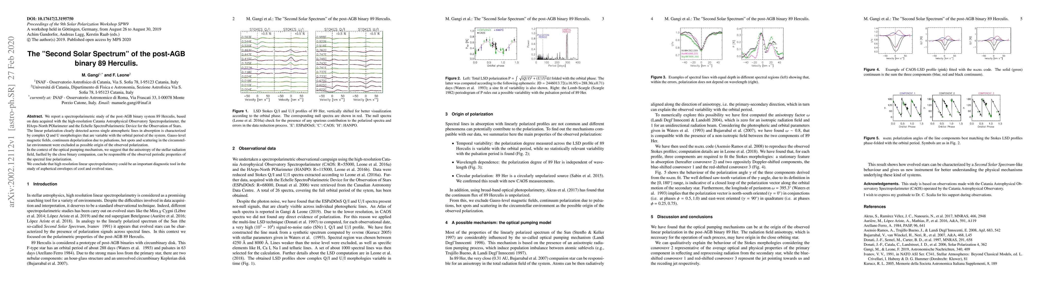 This study uses spectropolarimetry to analyze the post-AGB binary system 89 Herculis, revealing complex linear polarization patterns linked to the orbital period. The findings suggest that the anisotropy of the stellar radiation field, driven by the binary companion, is responsible for the observed polarization, highlighting the potential of high-resolution spectropolarimetry in studying evolved stars' aspherical envelopes.