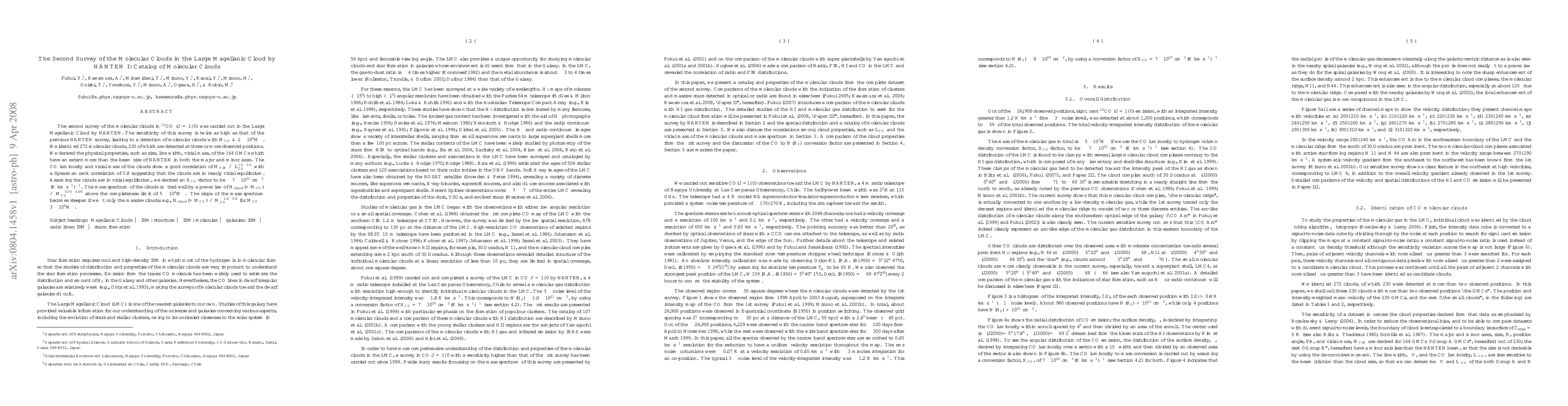 The NANTEN I survey detected 272 molecular clouds in the Large Magellanic Cloud with improved sensitivity, identifying 164 GMCs for detailed physical properties. The study shows a correlation between CO luminosity and virial mass, suggesting the clouds are in nearly virial equilibrium.