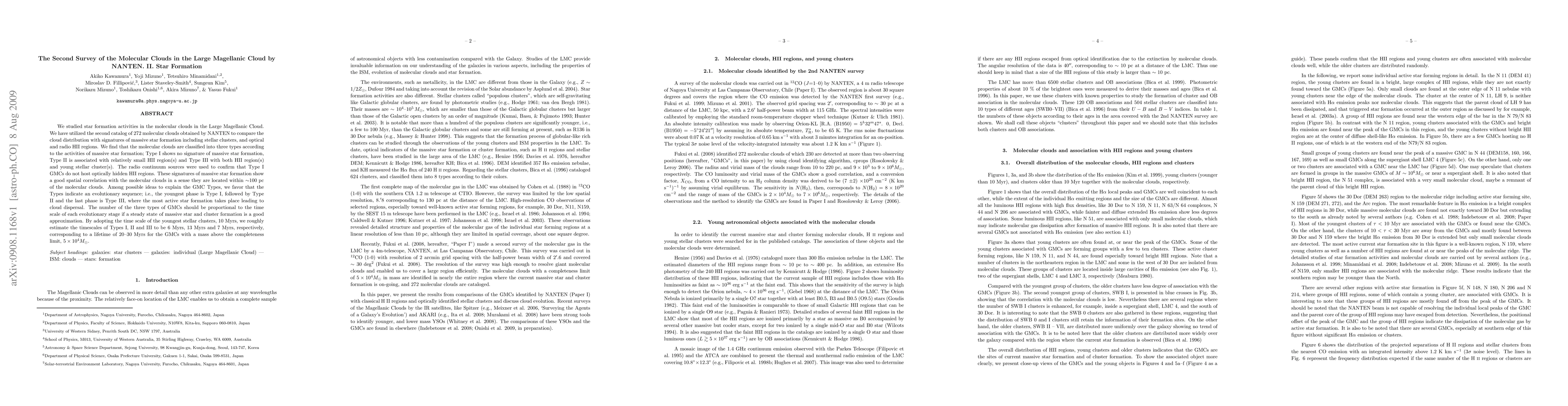 This paper investigates star formation activities in the Large Magellanic Cloud's molecular clouds using the second catalog of 272 clouds. It classifies clouds into three types based on massive star formation signatures, suggesting an evolutionary sequence from inactive to highly active star formation.