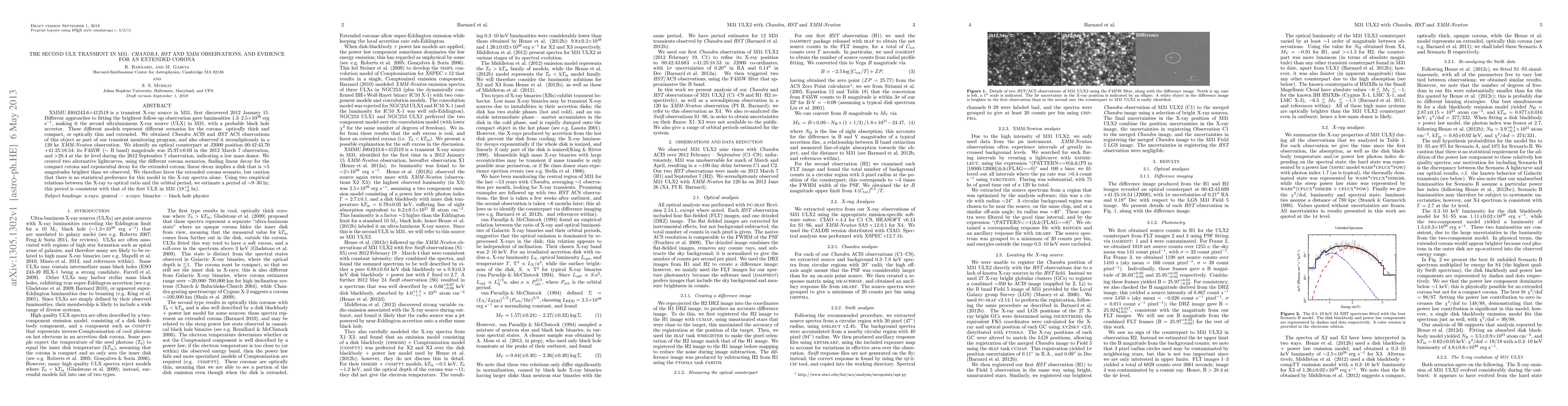 XMM J004243.6+412519 is a transient X-ray source in M31, first discovered 2012 January 15. Different approaches to fitting the brightest follow-up observation gave luminosities 1.3--2.5E+39 erg/s, making it the second ultraluminous X-ray source (ULX) in M31, with a probable black hole accretor. These different models represent different scenarios for the corona: optically thick and compact, or optically thin and extended. We obtained Chandra ACIS and {\em HST} ACS observations of this object as part of our transient monitoring program, and also observed it serendipitously in a 120 ks XMM-Newton observation. We identify an optical counterpart at J2000 position 00:42:43.70 +41:25:18.54; its F435W (~ B band) magnitude was 25.97+/-0.03 in the 2012 March 7 observation, and >28.4 at the 4 sigma level during the 2012 September 7 observation, indicating a low mass donor. We created two alternative lightcurves, using the different corona scenarios, finding linear decay for the compact corona and exponential decay for the extended corona; linear decay implies a disk that is >5 magnitudes brighter than we observed. We therefore favor the extended corona scenario, but caution that there is no statistical preference for this model in the X-ray spectra alone. Using two empirical relations between the X-ray to optical ratio and the orbital period, we estimate a period of ~9--30 hr; this period is consistent with that of the first ULX in M31 (18 +5 -6 hr).
