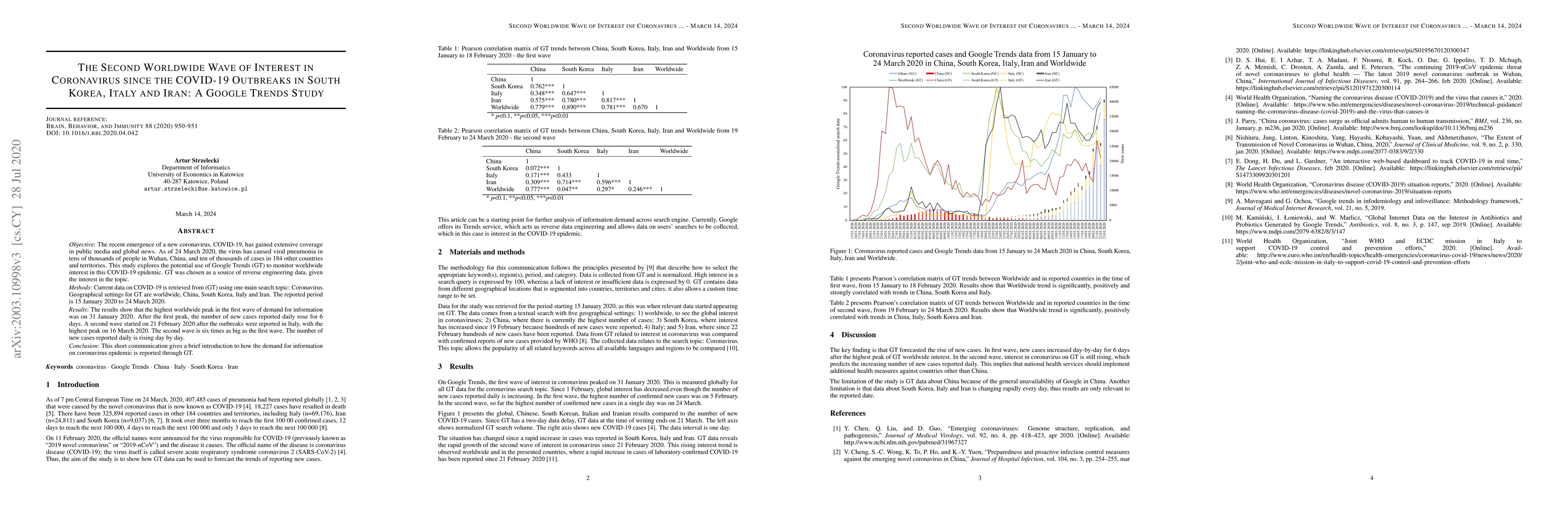 This study uses Google Trends to analyze global interest in COVID-19 from January 15 to March 24, 2020, identifying two major peaks in search interest: the first in late January and the second, significantly larger, in mid-March following outbreaks in Italy. The second wave reflects heightened global concern and information demand.