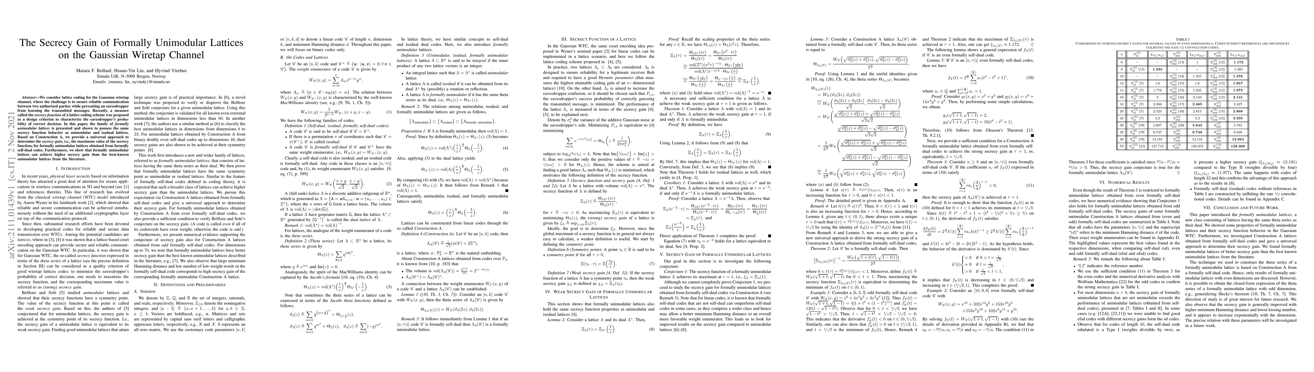 This paper investigates lattice coding for the Gaussian wiretap channel, focusing on formally unimodular lattices that achieve higher secrecy gain compared to existing unimodular lattices. It demonstrates that these lattices can maximize the secrecy function, ensuring better protection against eavesdroppers.