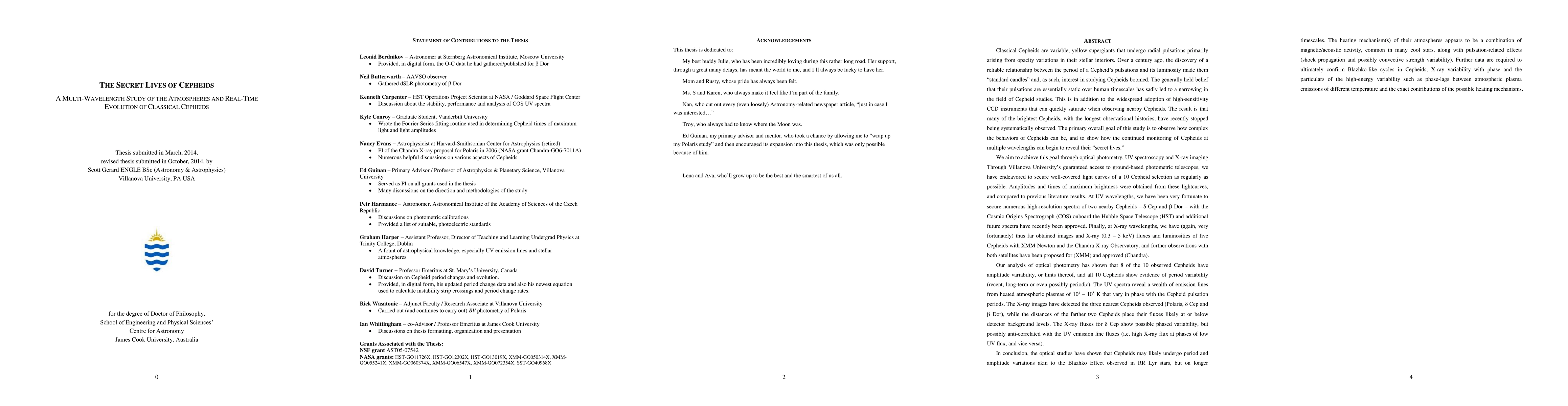 The primary goal of this study is to observe how complex the behaviors of Cepheids can be, and to show how the continued monitoring of Cepheids at multiple wavelengths can begin to reveal their "secret lives." We aim to achieve this through optical photometry, UV spectroscopy and X-ray imaging. Through Villanova's guaranteed access to ground-based telescopes, we have secured well-covered light curves as regularly as possible. Amplitudes and times of max brightness were obtained and compared to previous literature results. At UV wavelengths, we have secured hi-res spectra of 2 nearby Cepheids - delta Cep and beta Dor - with HST-COS. Also, we have obtained X-ray images of 5 Cepheids with XMM-Newton and the Chandra X-ray Observatory, and further observations with both satellites have been proposed for (XMM) and approved (Chandra). Optical photometry has shown that 8 of the 10 observed Cepheids have amplitude variability, or hints thereof, and all 10 show period variability (recent, long-term or possibly periodic). The UV spectra reveal emission lines from heated atmospheric plasmas of 10^4 - 10^5 K that vary in phase with the Cepheid pulsations. The X-ray images have detected the three nearest Cepheids observed (Polaris, delta Cep and beta Dor), while the distances of the other two place their fluxes likely at or below detector background levels. The X-ray fluxes for delta Cep show possible phased variability, but anti-correlated with the UV emission lines (i.e. high X-ray flux during low UV flux, and vice versa). Further data are required to ultimately confirm Blazhko-like cycles in Cepheids, X-ray variability with phase and the particulars of the high-energy variability such as phase-lags between atmospheric plasma emissions of different temperature and the exact contributions of the possible heating mechanism.