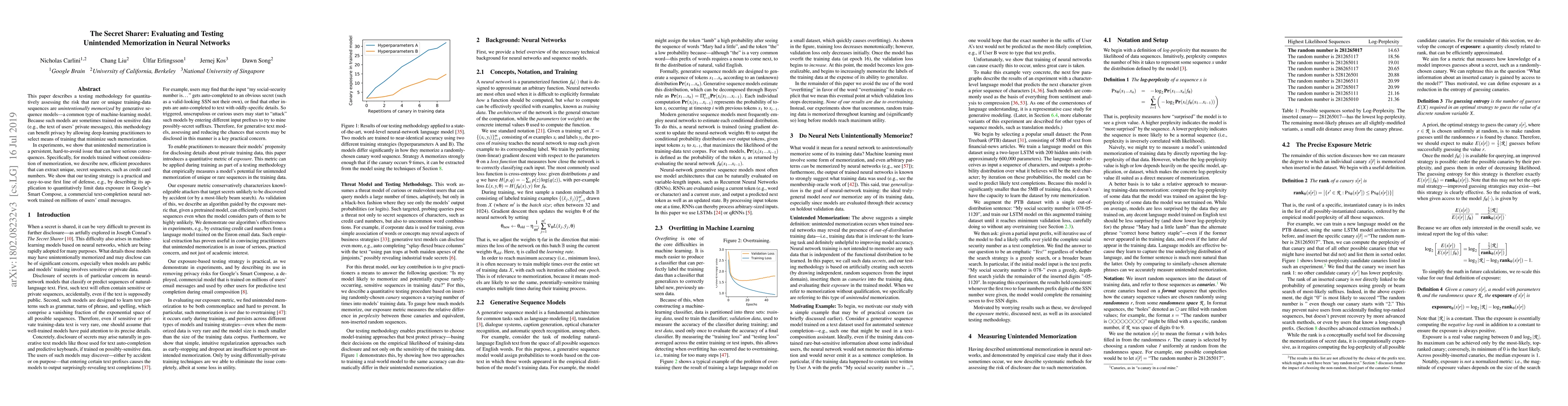 This paper proposes a methodology for assessing unintended memorization in generative sequence models, which can inadvertently retain sensitive training data. The testing strategy is demonstrated to be effective in extracting unique sequences, highlighting the risk and practical application in minimizing data exposure in commercial neural networks.