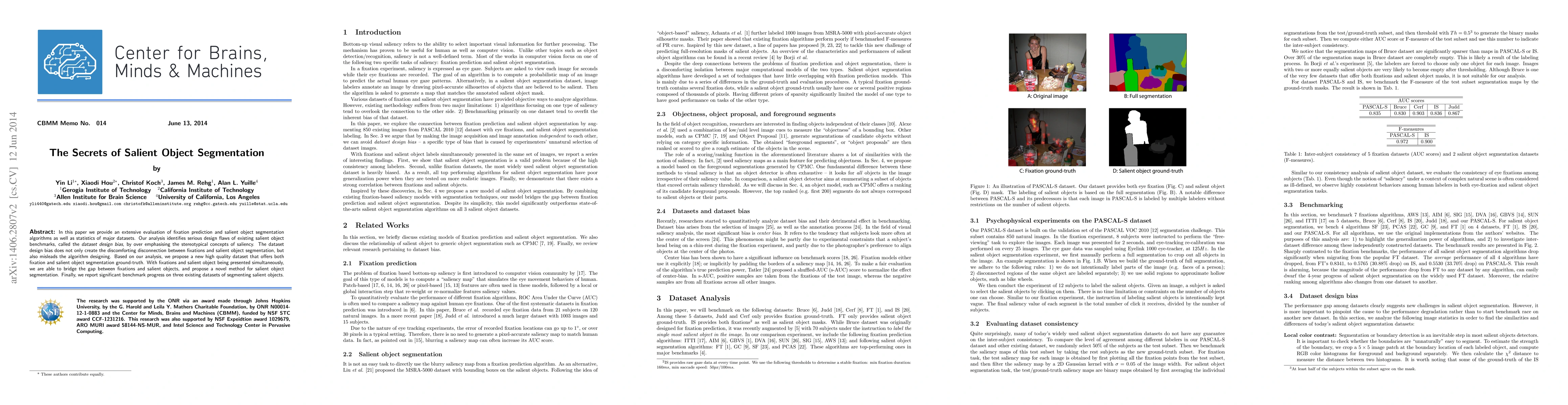 This paper evaluates salient object segmentation and fixation prediction algorithms, identifying design flaws in existing datasets that create a disconnect between fixations and salient object segmentation. It proposes a new dataset with simultaneous fixation and salient object ground-truth, bridging the gap and introducing a novel segmentation method, achieving significant improvements on benchmark datasets.