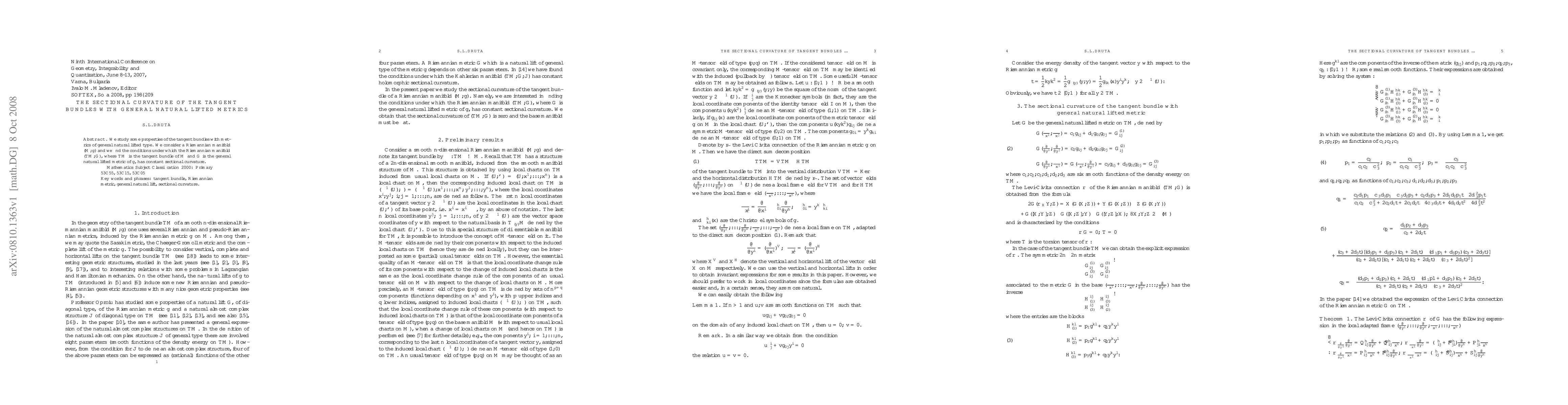 We study some properties of the tangent bundles with metrics of general natural lifted type. We consider a Riemannian manifold $(M,g)$ and we find the conditions under which the Riemannian manifold $(TM,G)$, where $TM$ is the tangent bundle of $M$ and $G$ is the general natural lifted metric of $g$, has constant sectional curvature.