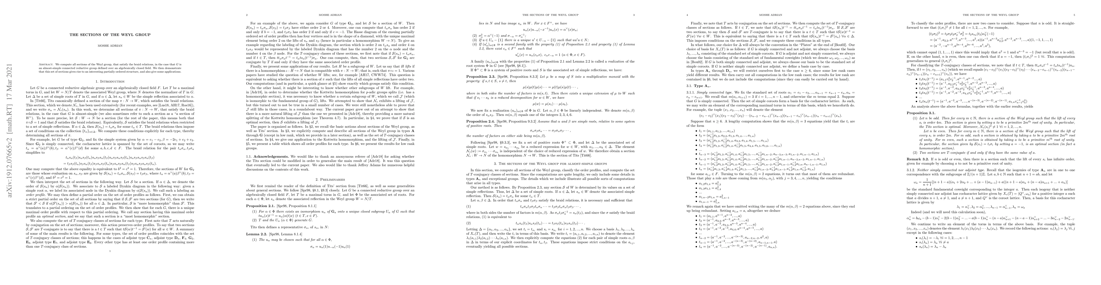 We compute all sections of the finite Weyl group, that satisfy the braid relations, in the case that G is an almost-simple connected reductive group defined over an algebraically closed field. We then demonstrate that this set of sections has an interesting partially ordered structure, and also give some applications.
