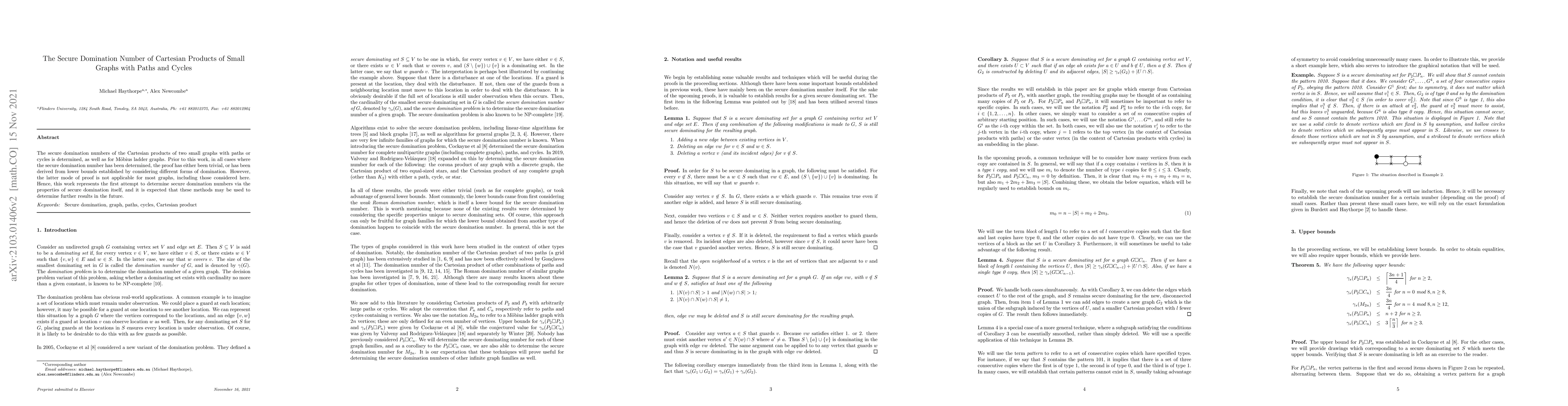 This paper determines the secure domination numbers for Cartesian products of small graphs with paths, cycles, and Mobius ladders, employing direct methods based on secure domination properties rather than lower bounds. The findings represent a novel approach that may pave the way for future research in this area.