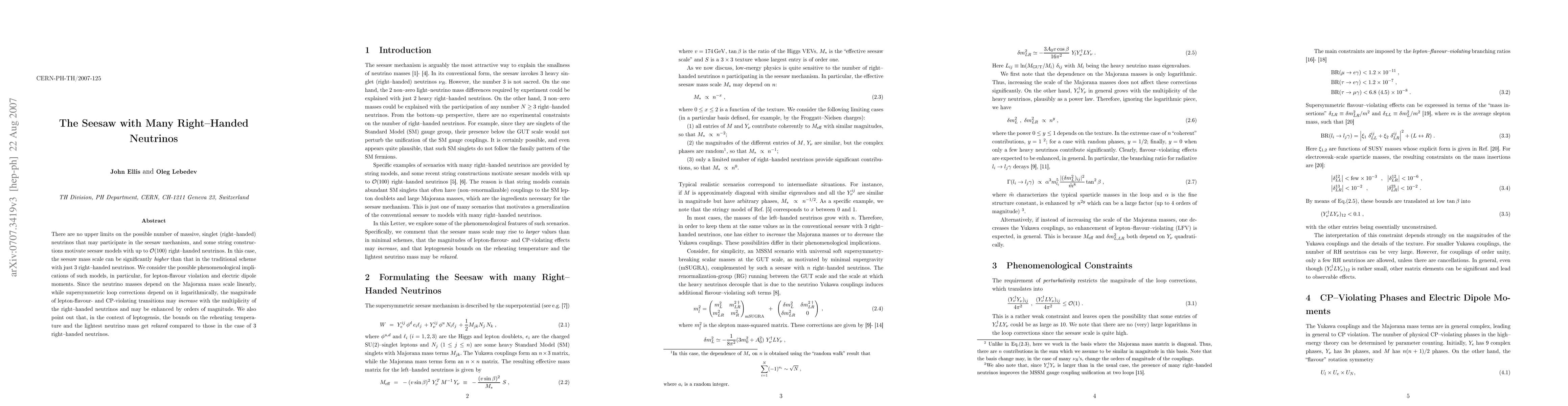 This paper explores the implications of a seesaw mechanism with numerous right-handed neutrinos, potentially up to O(100), which could elevate the seesaw mass scale. It highlights the increased potential for lepton-flavour violation and electric dipole moments due to the linear dependence of neutrino masses on the Majorana mass scale.