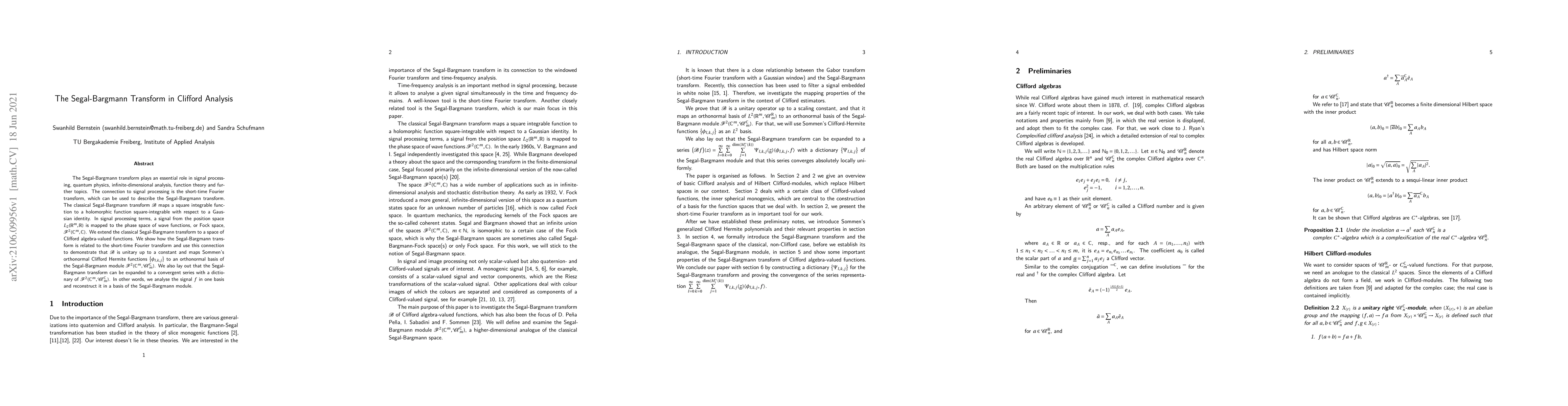 The research provided a novel mathematical framework for understanding the Segal-Bargmann transform and its connections to signal processing and Clifford analysis.
