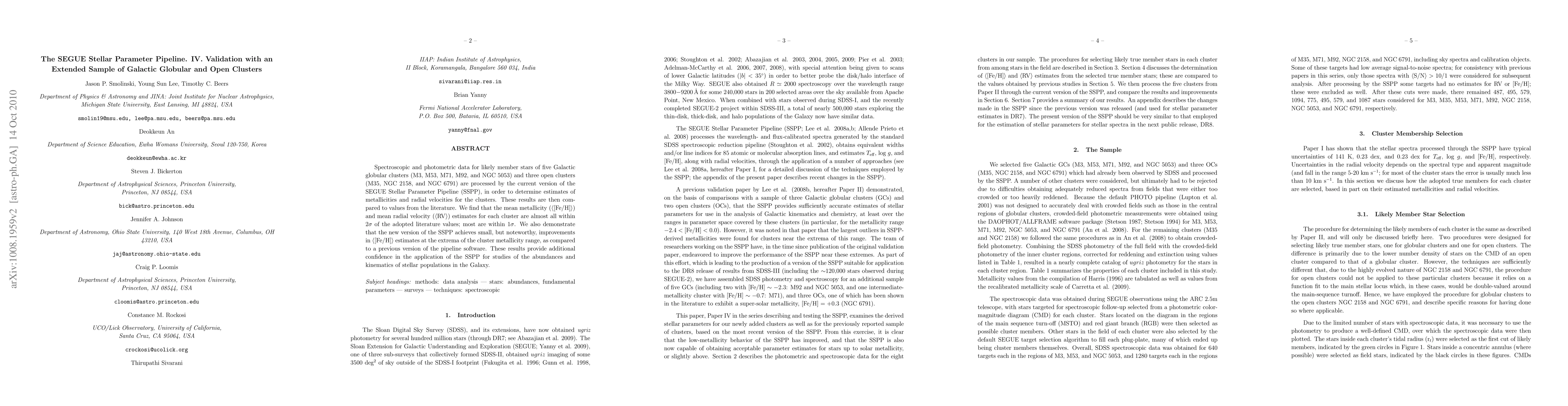 Stellar Parameter Pipeline (SSPP), in order to determine estimates of