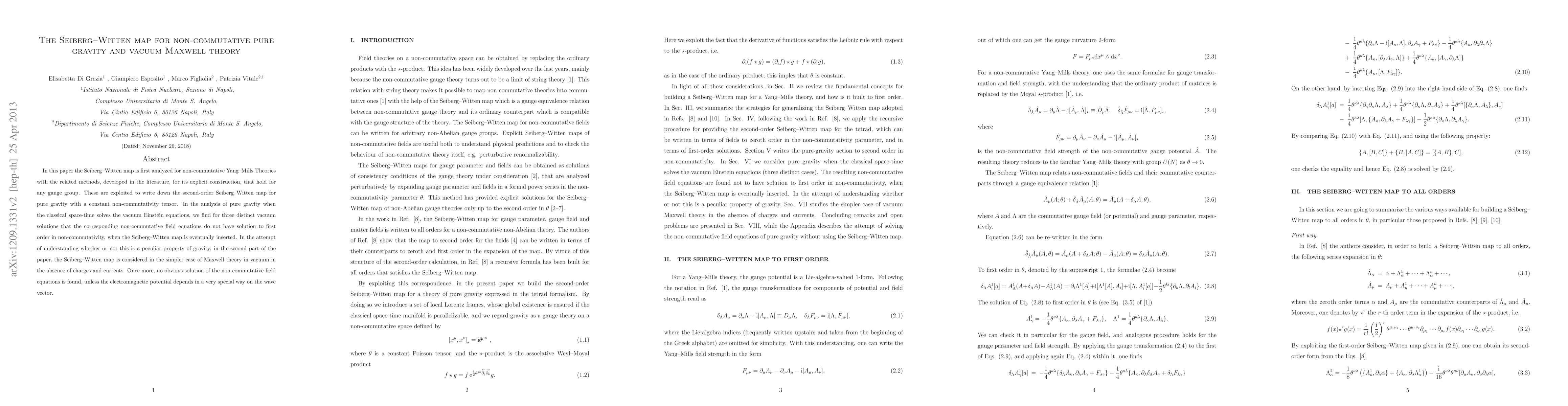 This paper analyzes the Seiberg-Witten map for non-commutative pure gravity and vacuum Maxwell theory, finding that first-order non-commutativity does not yield solutions for both gravitational and electromagnetic field equations. Special dependencies on wave vectors are required for potential solutions in the Maxwell case.