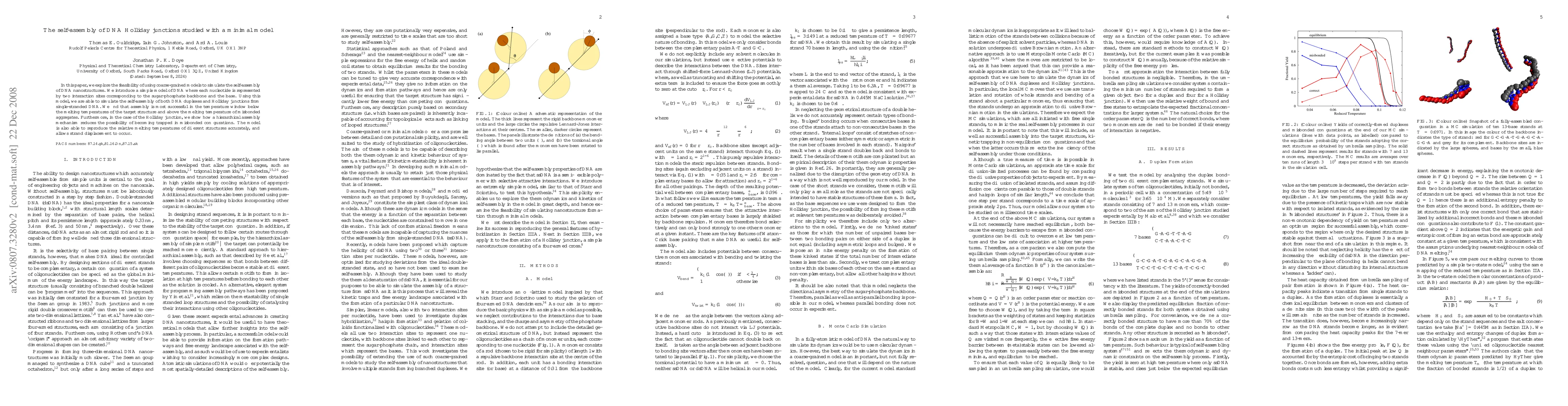 In this paper, we explore the feasibility of using coarse-grained models to simulate the self-assembly of DNA nanostructures. We introduce a simple model of DNA where each nucleotide is represented by two interaction sites corresponding to the phosphate-sugar backbone and the base. Using this model, we are able to simulate the self-assembly of both DNA duplexes and Holliday junctions from single-stranded DNA. We find that assembly is most successful in the temperature window below the melting temperatures of the target structure and above the melting temperature of misbonded aggregates. Furthermore, in the case of the Holliday junction, we show how a hierarchical assembly mechanism reduces the possibility of becoming trapped in misbonded configurations. The model is also able to reproduce the relative melting temperatures of different structures accurately, and allows strand displacement to occur.