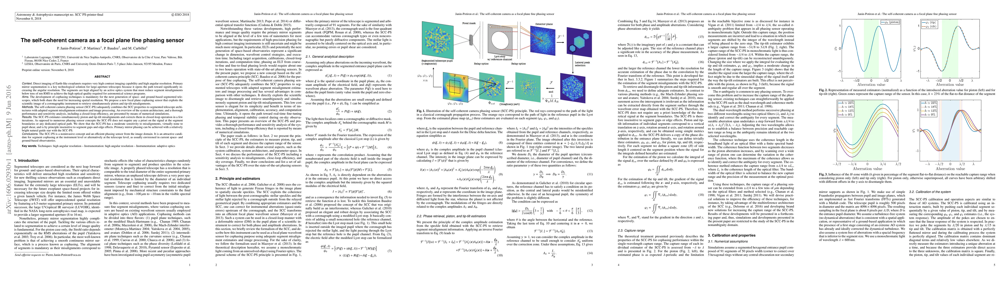The paper proposes a self-coherent camera (SCC) as a focal plane fine phasing sensor for segmented telescopes, enabling simultaneous estimation and correction of piston and tip-tilt misalignments without requiring dedicated optical paths or a priori signal information. The SCC-PS is shown to be efficient and noninvasive, suitable for both space- and ground-based observatories.