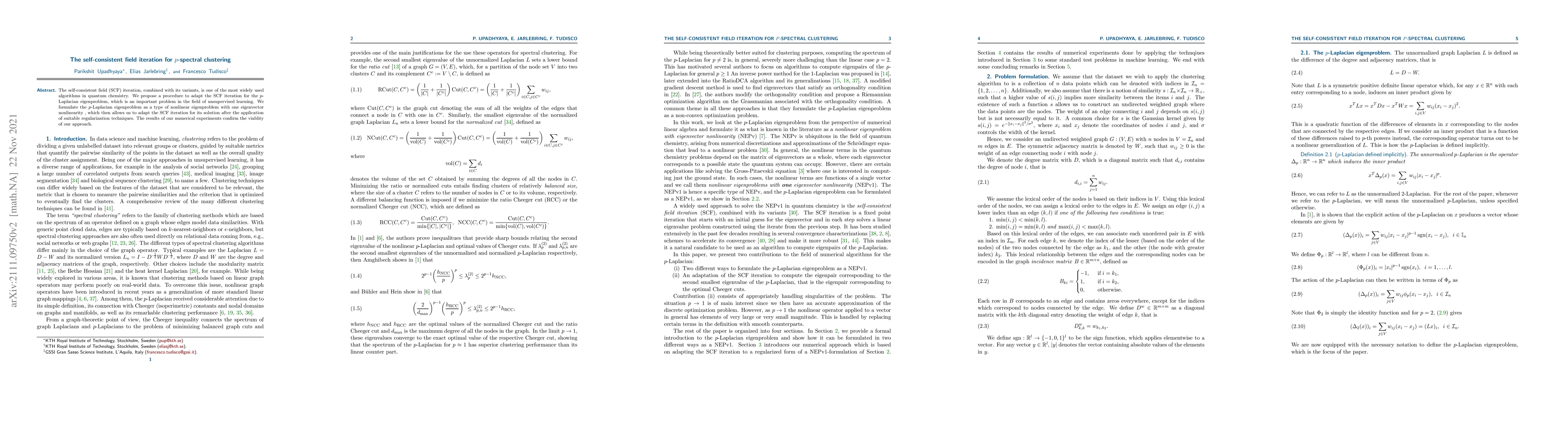 This paper proposes adapting the self-consistent field (SCF) iteration for solving the p-Laplacian eigenproblem in unsupervised learning. The method involves regularization and shows promising results in numerical experiments.