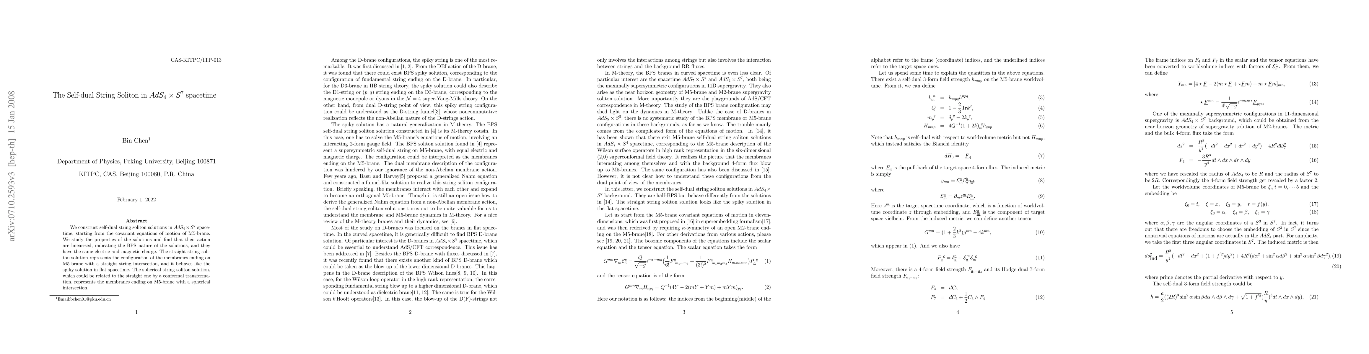 We construct self-dual string soliton solutions in $AdS_4\times S^7$ spacetime, starting from the covariant equations of motion of M5-brane. We study the properties of the solutions and find that their action are linearized, indicating the BPS nature of the solutions, and they have the same electric and magnetic charge. The straight string soliton solution represents the configuration of the membranes ending on M5-brane with a straight string intersection, and it behaves like the spiky solution in flat spacetime. The spherical string soliton solution, which could be related to the straight one by a conformal transformation, represents the membranes ending on M5-brane with a spherical intersection.