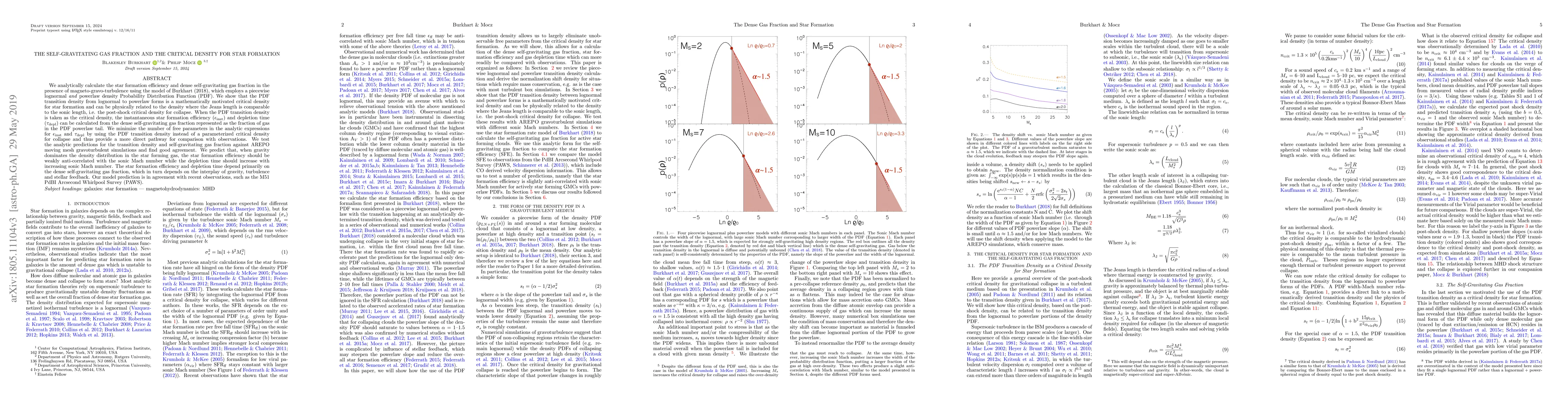 This paper analytically determines the critical density for star formation using a model based on magneto-gravo-turbulence and a piecewise lognormal and powerlaw density PDF. The transition density in the PDF correlates with the Jeans length and sonic length, providing a direct measure for star formation efficiency and depletion time, which depend on the dense self-gravitating gas fraction influenced by gravity, turbulence, and stellar feedback.