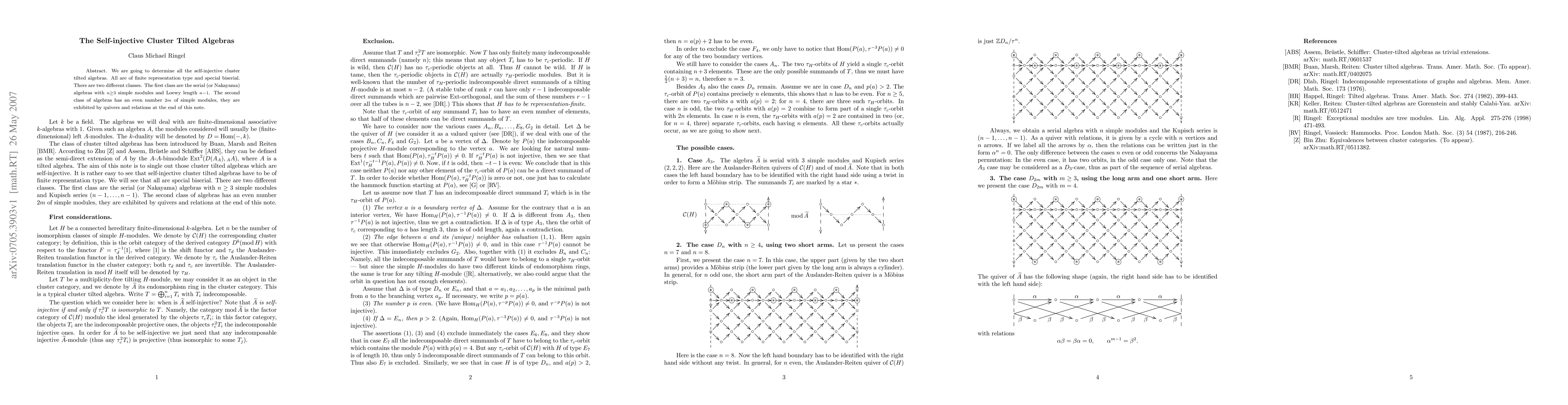 We are going to determine all the self-injective cluster tilted algebras. All are of finite representation type and special biserial.