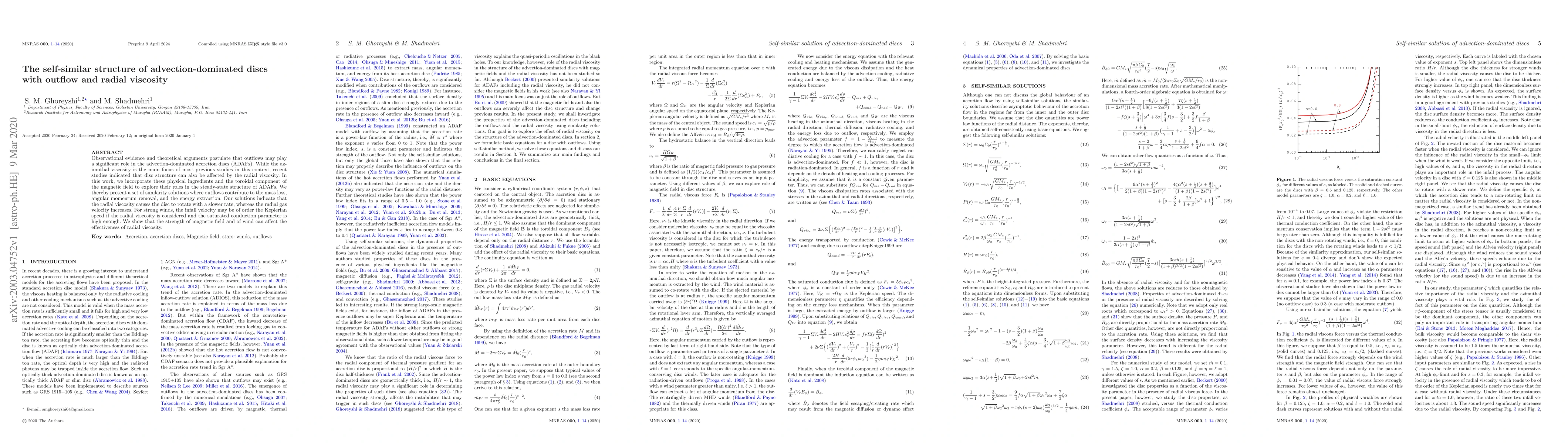 This paper investigates the self-similar structure of advection-dominated accretion discs (ADAFs) considering outflows and radial viscosity, finding that radial viscosity slows disc rotation while increasing radial gas velocity. The study reveals that strong winds and high saturated conduction parameters can lead to infall velocities comparable to Keplerian speeds, with magnetic field strength and wind affecting the effectiveness of radial viscosity.
