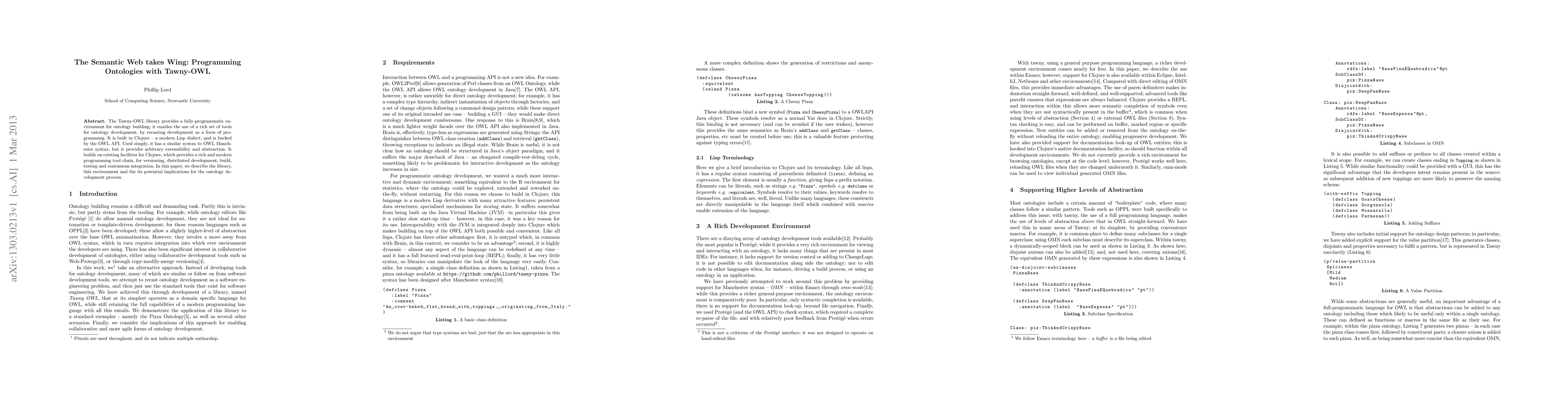 The Tawny-OWL library offers a programmatic environment for ontology development in Clojure, leveraging the OWL API for extensibility and modern development tools. It aims to transform ontology development into a more flexible and integrated programming process.