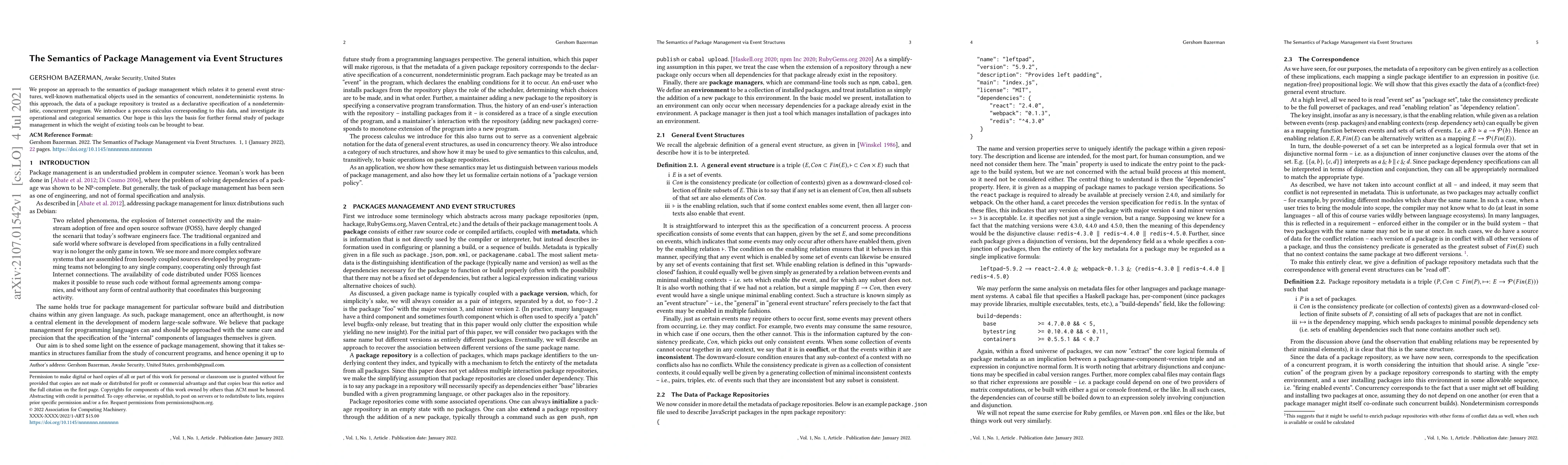 We propose an approach to the semantics of package management which relates it to general event structures, well-known mathematical objects used in the semantics of concurrent, nondeterministic systems. In this approach, the data of a package repository is treated as a declarative specification of a nondeterministic, concurrent program. We introduce a process calculus corresponding to this data, and investigate its operational and categorical semantics. Our hope is this lays the basis for further formal study of package management in which the weight of existing tools can be brought to bear.