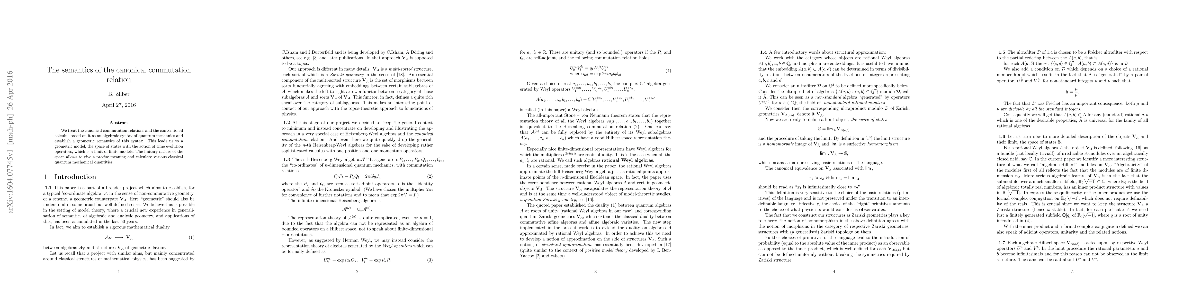 This paper establishes a geometric semantics for the canonical commutation relations in quantum mechanics, leading to a finite model that precisely defines and calculates classical quantum mechanical quantities. The geometric model involves a space of states with time evolution operators, which approximates finite models.
