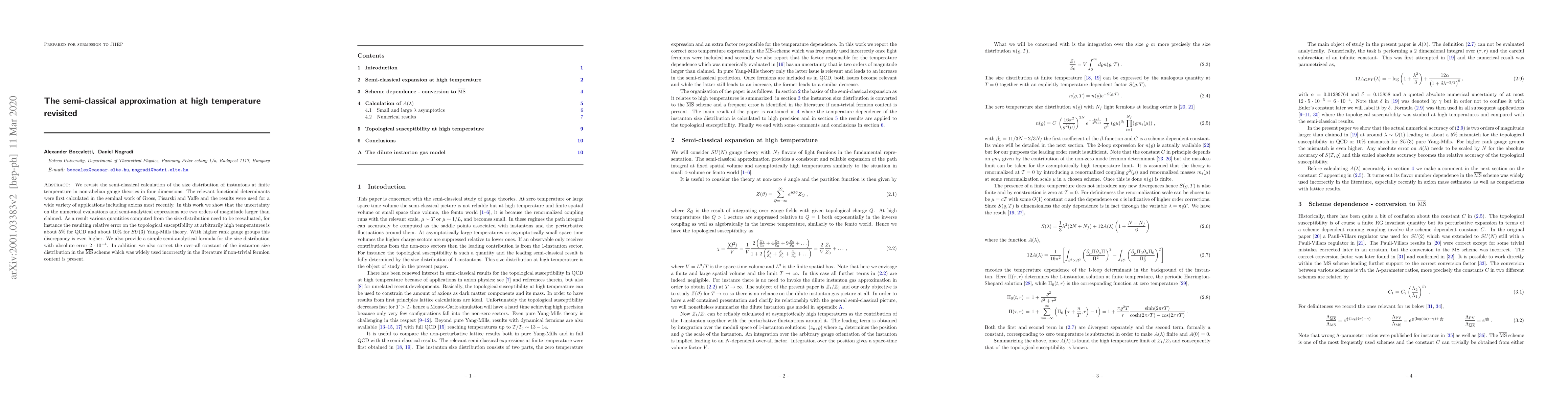 Researchers reevaluate semi-classical calculations for instanton size distribution at high temperatures, finding a 2-10% error margin in quantities like topological susceptibility and a simplified formula with an absolute error of $2 imes 10^{-4}$.