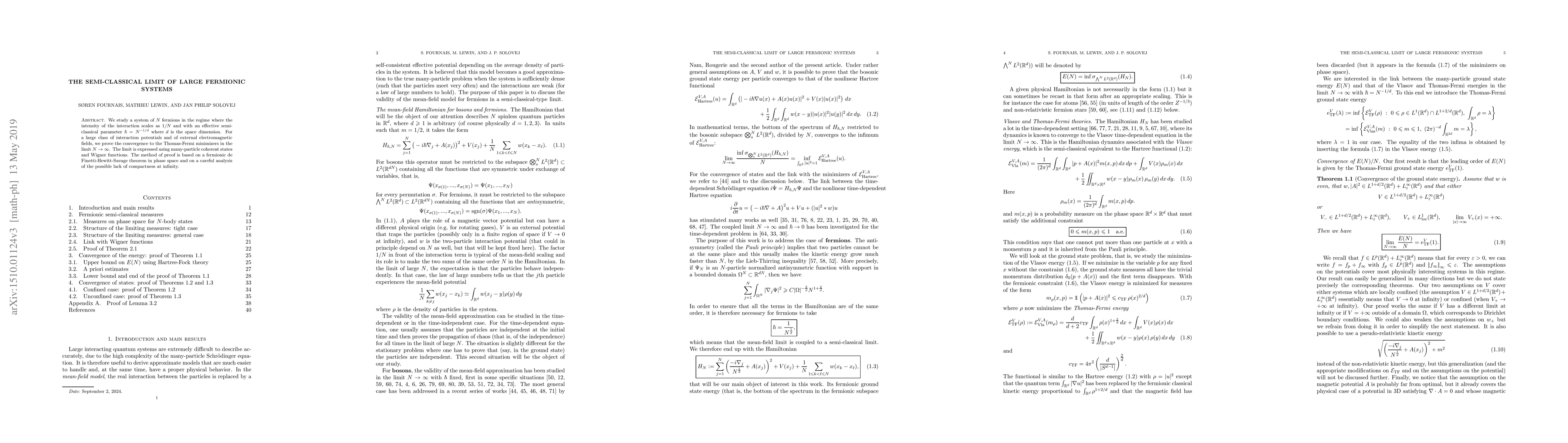 This research paper investigates how large fermionic systems behave when their interactions scale with the system size, leading to convergence towards Thomas-Fermi minimizers in the semi-classical limit.