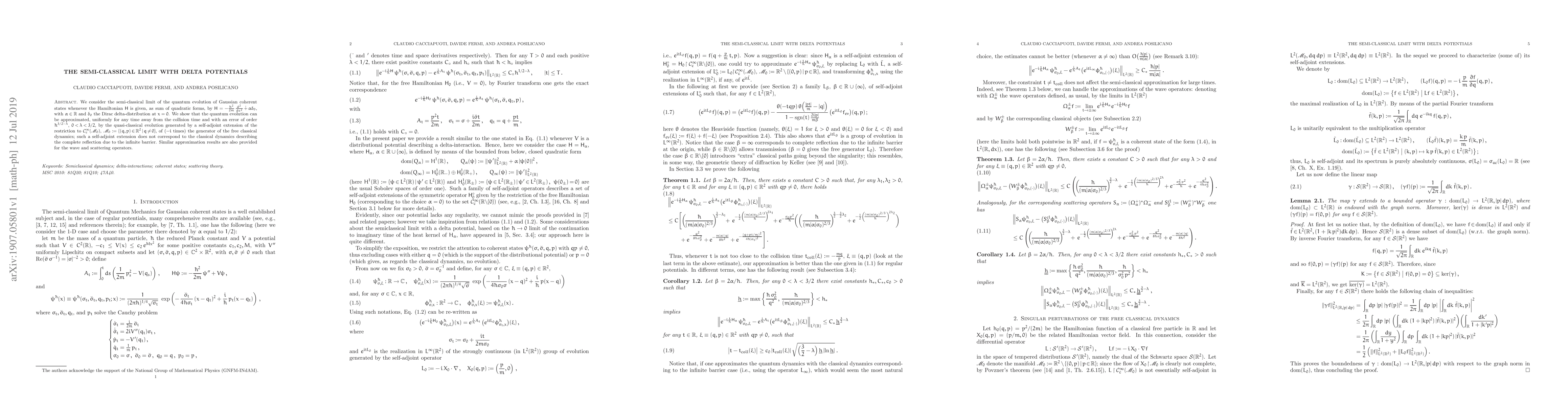 We consider the semi-classical limit of the quantum evolution of Gaussian coherent states whenever the Hamiltonian $\mathsf H$ is given, as sum of quadratic forms, by $\mathsf H= -\frac{\hbar^{2}}{2m}\,\frac{d^{2}\,}{dx^{2}}\,\dot{+}\,\alpha\delta_{0}$, with $\alpha\in\mathbb R$ and $\delta_{0}$ the Dirac delta-distribution at $x=0$. We show that the quantum evolution can be approximated, uniformly for any time away from the collision time and with an error of order $\hbar^{3/2-\lambda}$, $0\!<\!\lambda\!<\!3/2$, by the quasi-classical evolution generated by a self-adjoint extension of the restriction to $\mathcal C^{\infty}_{c}({\mathscr M}_{0})$, ${\mathscr M}_{0}:=\{(q,p)\!\in\!\mathbb R^{2}\,|\,q\!\not=\!0\}$, of ($-i$ times) the generator of the free classical dynamics; such a self-adjoint extension does not correspond to the classical dynamics describing the complete reflection due to the infinite barrier. Similar approximation results are also provided for the wave and scattering operators.
