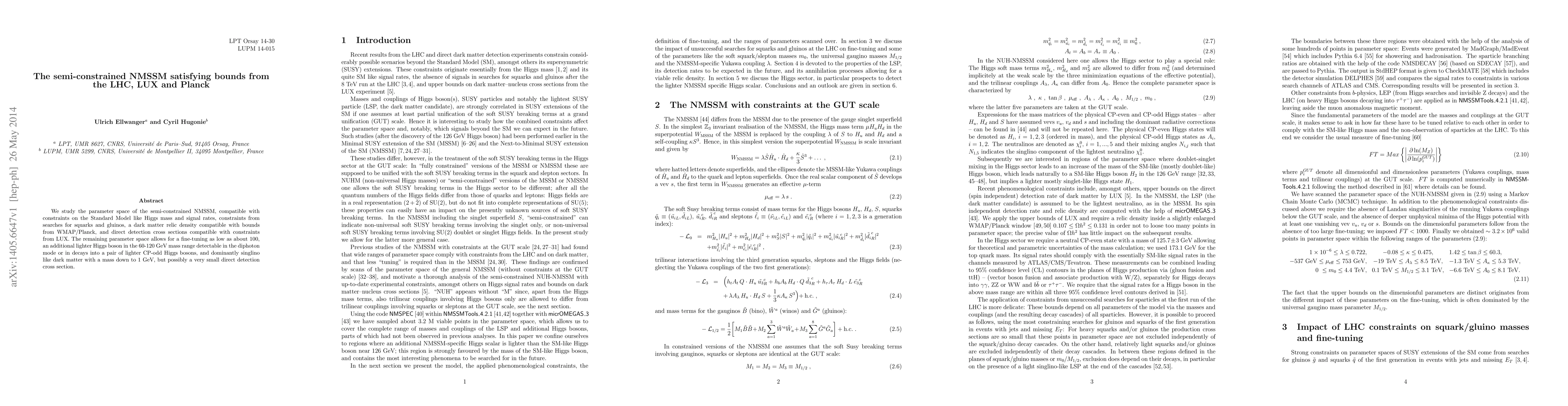 We study the parameter space of the semi-constrained NMSSM, compatible with constraints on the Standard Model like Higgs mass and signal rates, constraints from searches for squarks and gluinos, a dark matter relic density compatible with bounds from WMAP/Planck, and direct detection cross sections compatible with constraints from LUX. The remaining parameter space allows for a fine-tuning as low as about 100, an additional lighter Higgs boson in the 60-120 GeV mass range detectable in the diphoton mode or in decays into a pair of lighter CP-odd Higgs bosons, and dominantly singlino like dark matter with a mass down to 1 GeV, but possibly a very small direct detection cross section.