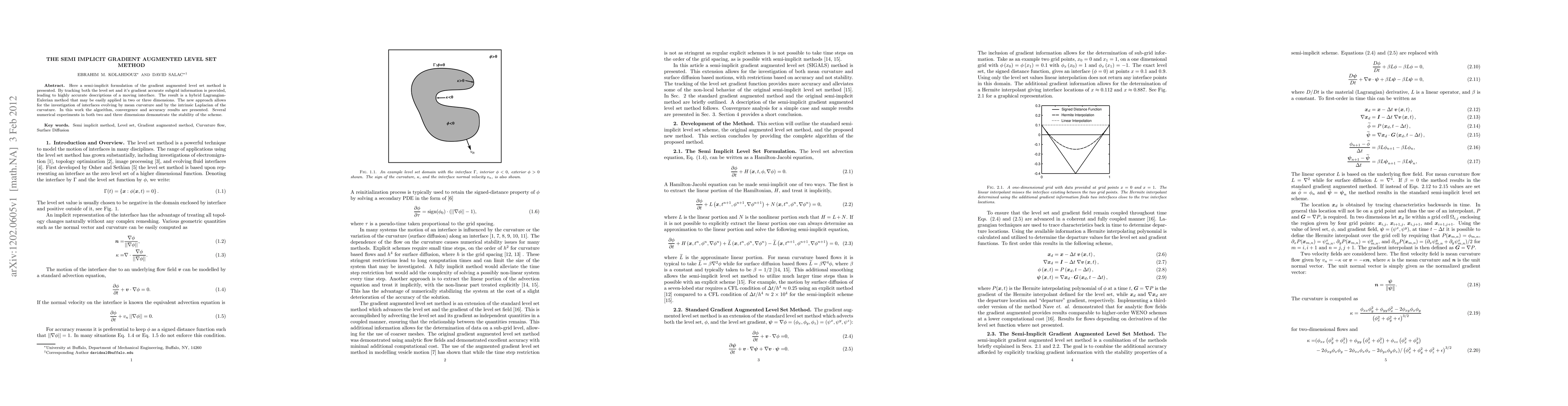 Here a semi-implicit formulation of the gradient augmented level set method is presented. By tracking both the level set and it's gradient accurate subgrid information is provided,leading to highly accurate descriptions of a moving interface. The result is a hybrid Lagrangian-Eulerian method that may be easily applied in two or three dimensions. The new approach allows for the investigation of interfaces evolving by mean curvature and by the intrinsic Laplacian of the curvature. In this work the algorithm, convergence and accuracy results are presented. Several numerical experiments in both two and three dimensions demonstrate the stability of the scheme.