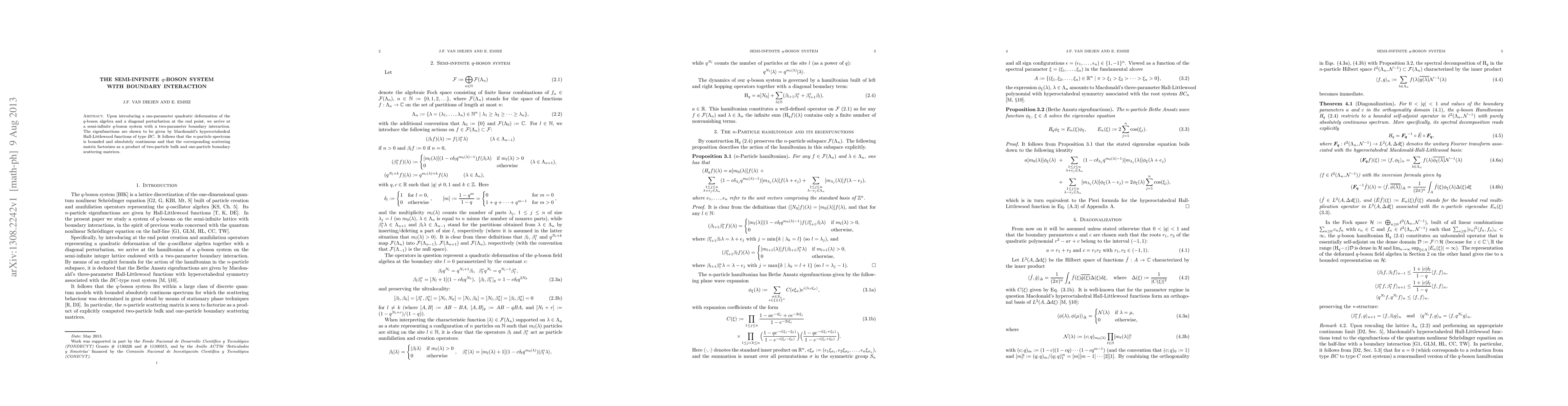 Upon introducing a one-parameter quadratic deformation of the q-boson algebra and a diagonal perturbation at the end point, we arrive at a semi-infinite q-boson system with a two-parameter boundary interaction. The eigenfunctions are shown to be given by Macdonald's hyperoctahedral Hall-Littlewood functions of type BC. It follows that the n-particle spectrum is bounded and absolutely continuous and that the corresponding scattering matrix factorizes as a product of two-particle bulk and one-particle boundary scattering matrices.