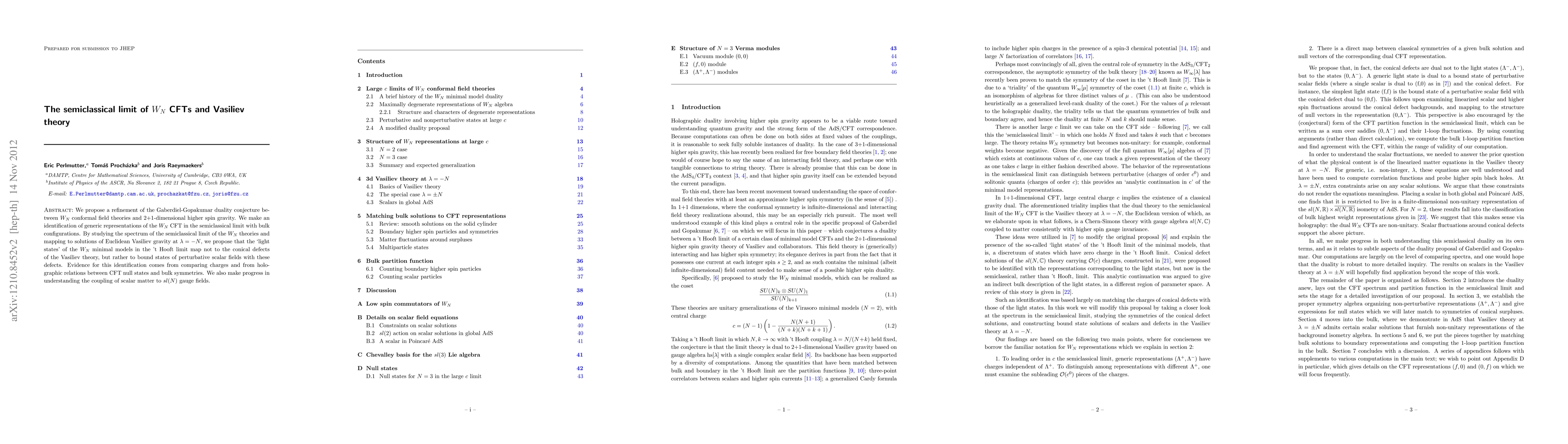 This paper refines the Gaberdiel-Gopakumar duality conjecture, identifying the semiclassical limit of W_N conformal field theories with configurations in 2+1-dimensional higher spin gravity, specifically Vasiliev theory, and proposes that 'light states' correspond to bound states rather than conical defects.