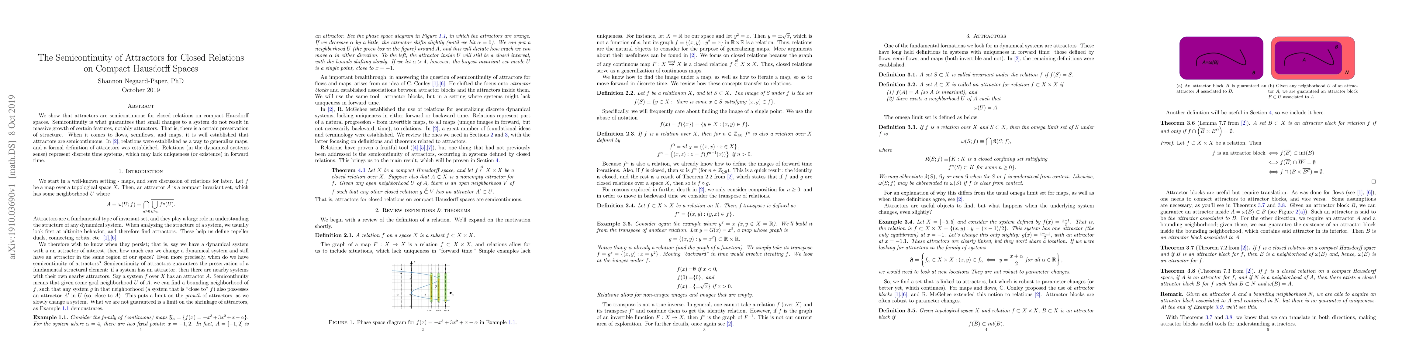 We show that attractors are semicontinuous for closed relations on compact Hausdorff spaces. Semicontinuity is what guarantees that small changes to a system do not result in massive growth of certain features, notably attractors. That is, there is a certain preservation of structure. When it comes to flows, semiflows, and maps, it is well established that attractors are semicontinuous. In [2], relations were established as a way to generalize maps, and a formal definition of attractors was established. Relations (in the dynamical systems sense) represent discrete time systems, which may lack uniqueness (or existence) in forward time.