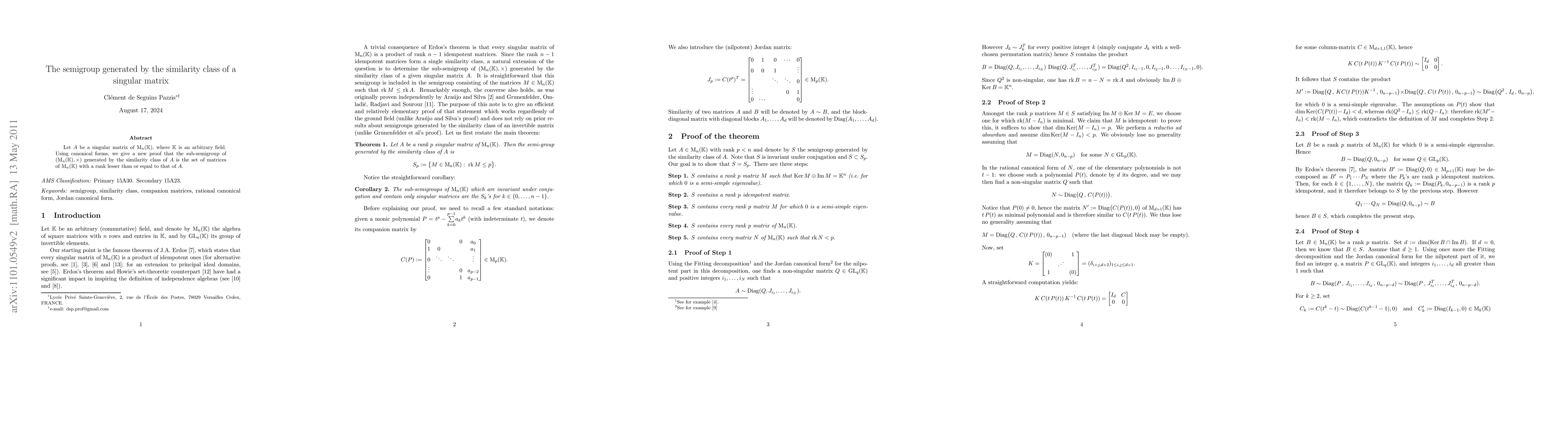 Let A be a singular matrix of M_n(K), where K is an arbitrary field. Using canonical forms, we give a new proof that the sub-semigroup of (M_n(K),x) generated by the similarity class of A is the set of matrices of M_n(K) with a rank lesser than or equal to that of A.