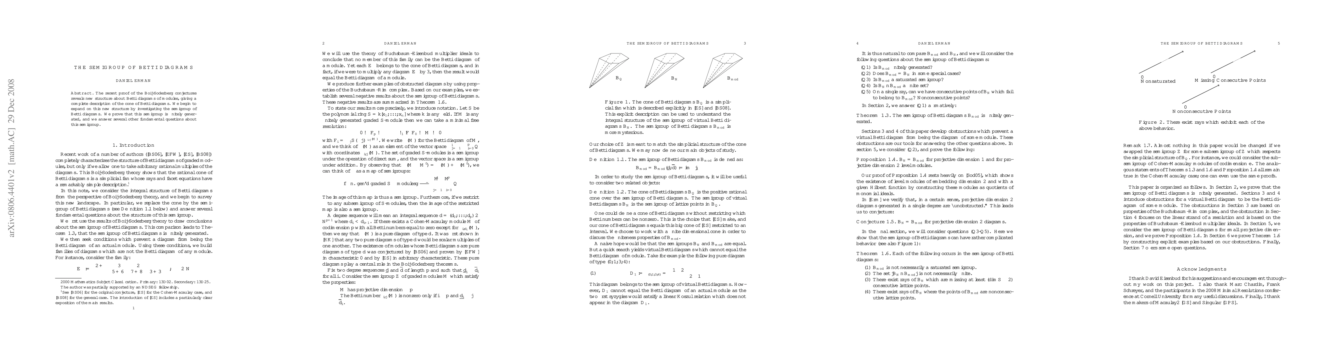 The paper investigates the semigroup of Betti diagrams, proving it is finitely generated and answering fundamental questions about it, building on the proof of the Boij-Soederberg conjectures which reveals new structure about Betti diagrams of modules.