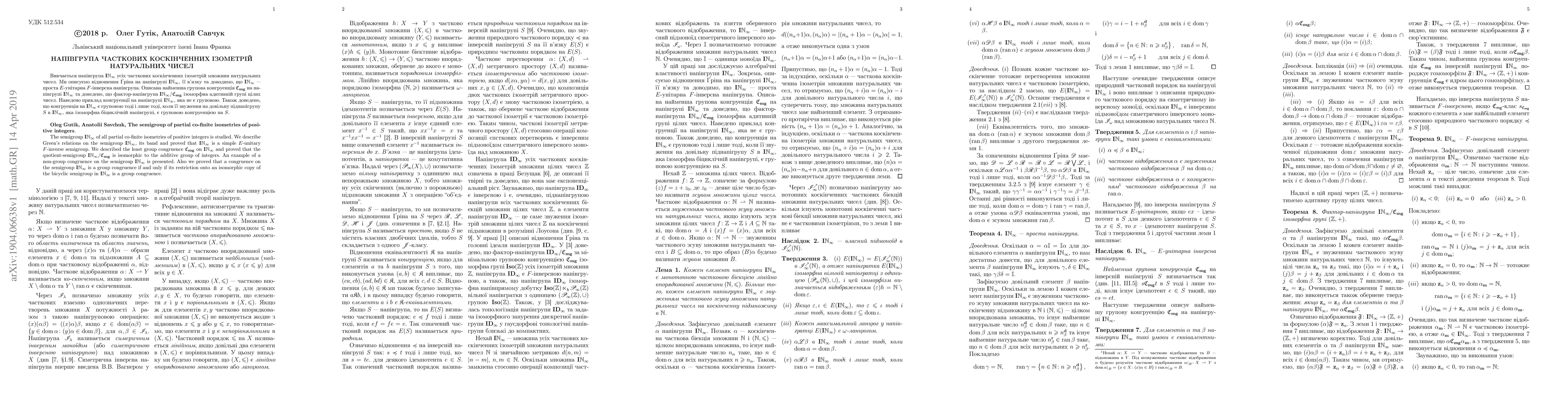 This paper studies the semigroup $\mathbf{I}\mathbb{N}_{\infty}$ of partial co-finite isometries of positive integers, describing Green's relations, its band structure, and proving it is a simple $E$-unitary $F$-inverse semigroup. It also explores the least group congruence and its quotient-semigroup, which is isomorphic to the additive group of integers.