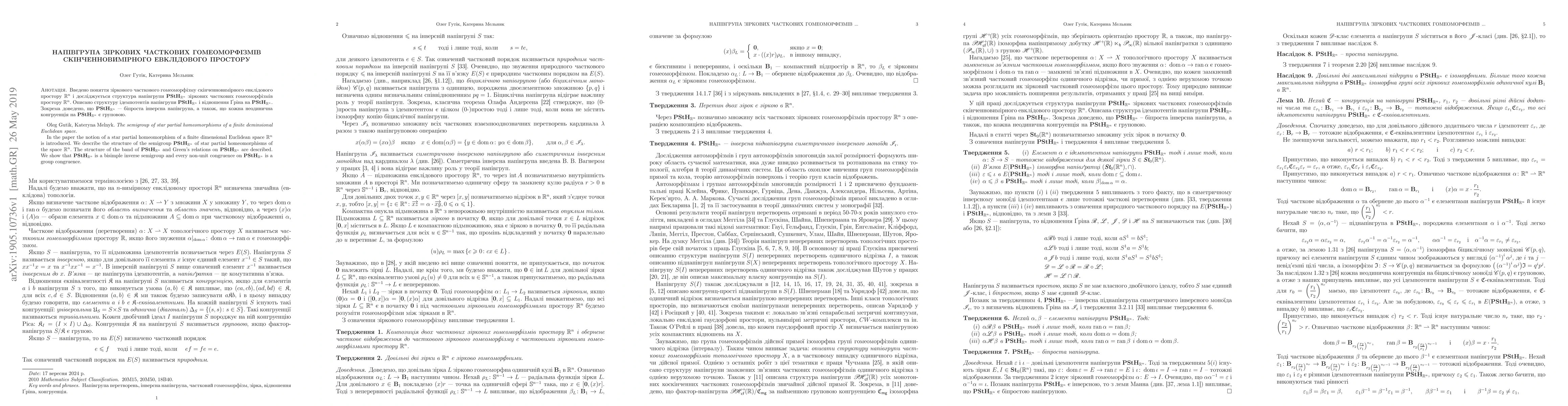 In the paper the notion of a star partial homeomorphism of a finite dimensional Euclidean space $\mathbb{R}^n$ is introduced. We describe the structure of the semigroup $\mathbf{PStH}_{\mathbb{R}^n}$ of star partial homeomorphisms of the space $\mathbb{R}^n.$ The structure of the band of $\mathbf{PStH}_{\mathbb{R}^n}$ and Green's relations on $\mathbf{PStH}_{\mathbb{R}^n}$ are described. We show that $\mathbf{PStH}_{\mathbb{R}^n}$ is a bisimple inverse semigroup and every non-unit congruence on $\mathbf{PStH}_{\mathbb{R}^n}$ is a group congruence.