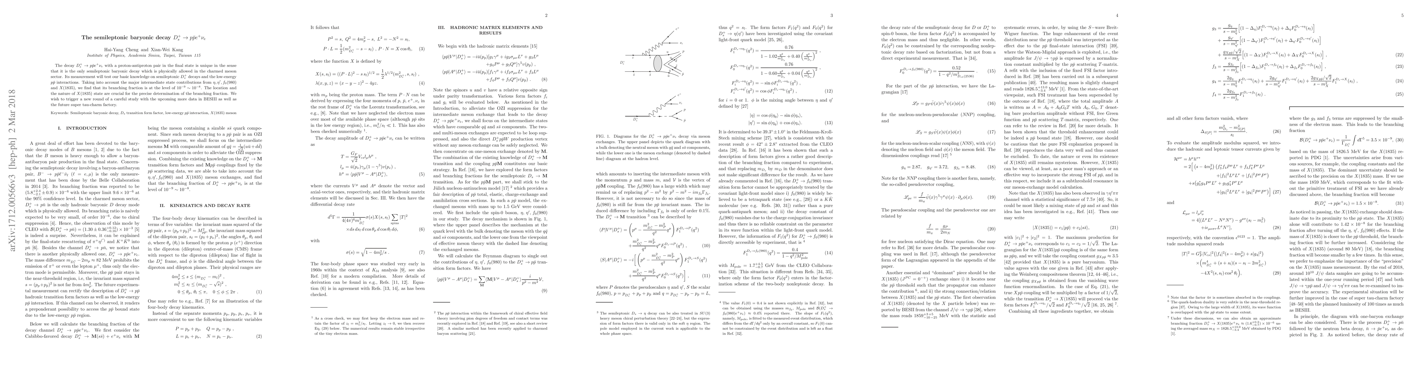 Researchers studied a rare charmed meson decay, finding a branching fraction of $10^{-9} o 10^{-8}$ for the $D_s^+ o par p e^+ u_e$ process.