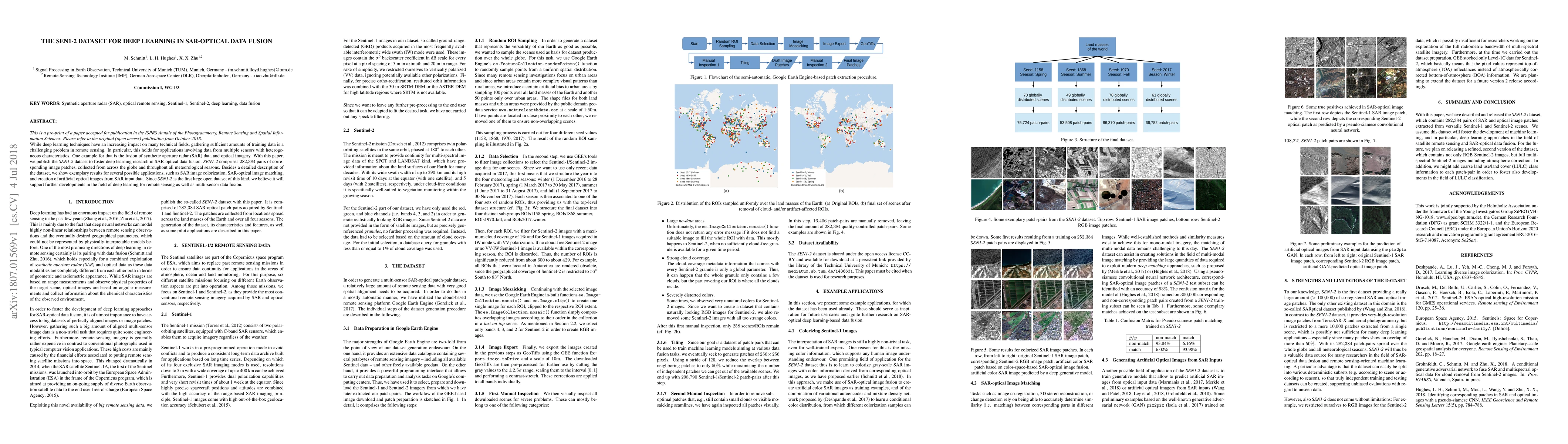 This paper introduces the SEN1-2 dataset, a large collection of 282,384 SAR-optical image patch pairs, aimed at advancing deep learning research in remote sensing data fusion. The dataset is expected to facilitate applications like SAR image colorization and SAR-optical image matching.
