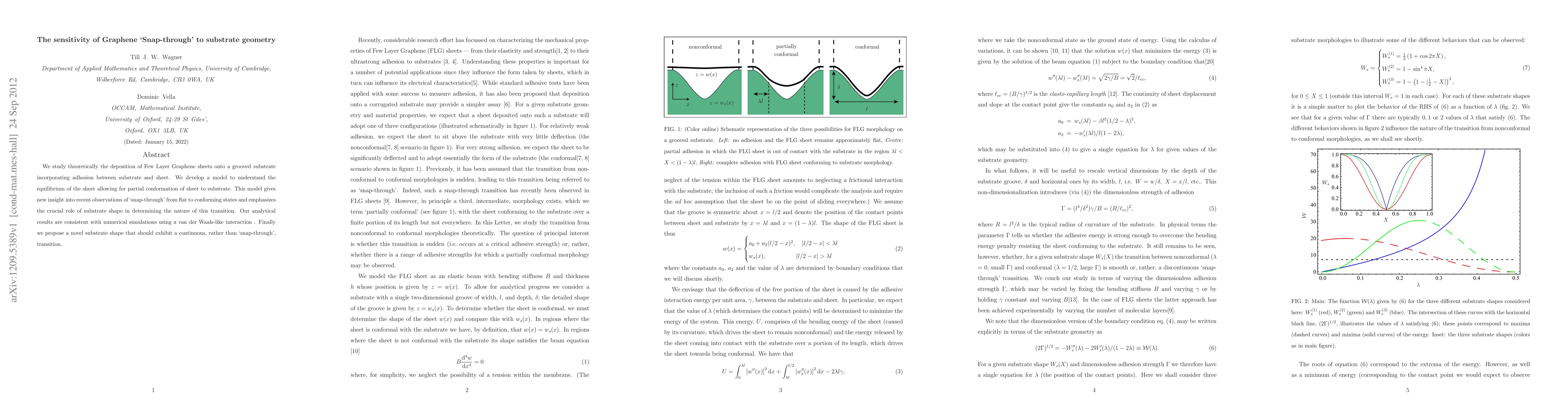 We study theoretically the deposition of Few Layer Graphene sheets onto a grooved substrate incorporating adhesion between substrate and sheet. We develop a model to understand the equilibrium of the sheet allowing for partial conformation of sheet to substrate. This model gives new insight into recent observations of 'snap-through' from flat to conforming states and emphasizes the crucial role of substrate shape in determining the nature of this transition. Our analytical results are consistent with numerical simulations using a van der Waals-like interaction . Finally we propose a novel substrate shape that should exhibit a continuous, rather than 'snap-through', transition.