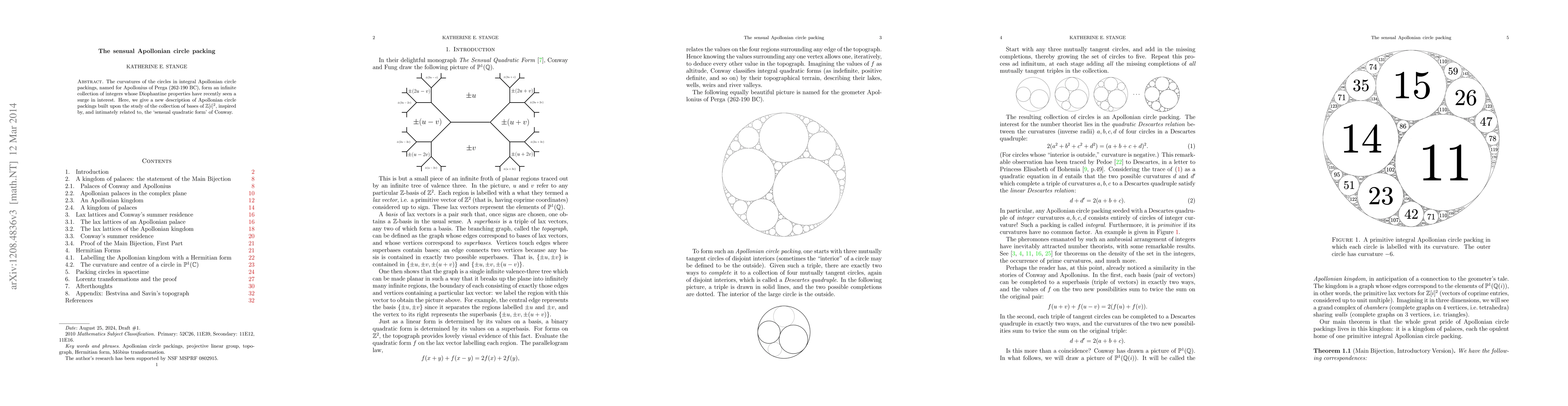 This paper presents a novel approach to Apollonian circle packings, leveraging the collection of bases in Z[i]^2 and connecting it to Conway's "sensual quadratic form" to describe the infinite set of integer curvatures arising from these packings.